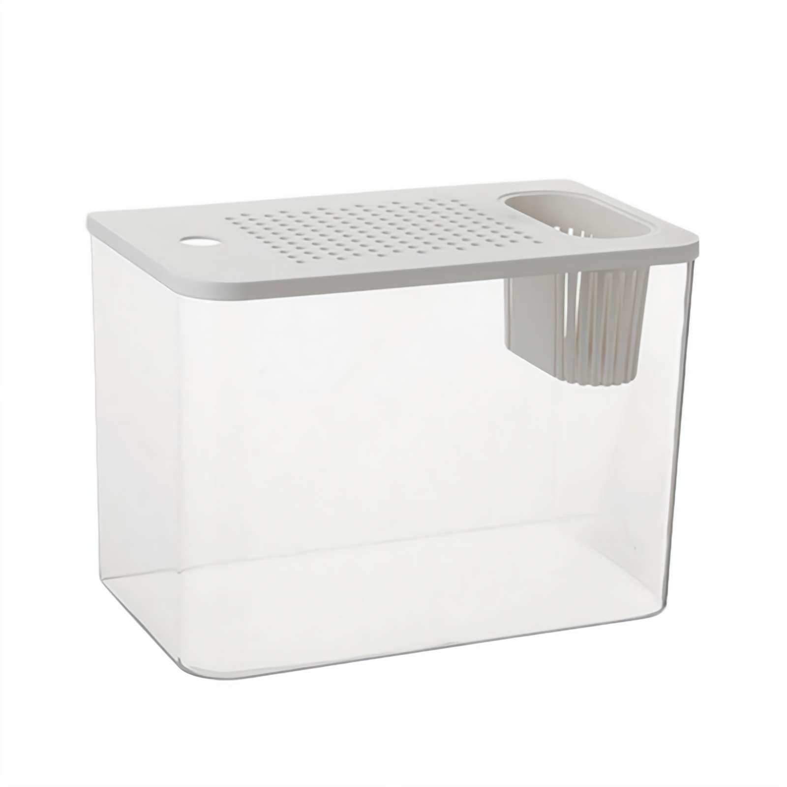 Hey Aquaristik-Fans! Diese transparente Plastik-Fischschale ist die perfekte Mini-Heimat für deine Betta-Fische oder kleine Schildkröten. Mit ca. 14x16cm passt sie super auf den Schreibtisch oder ins Regal.