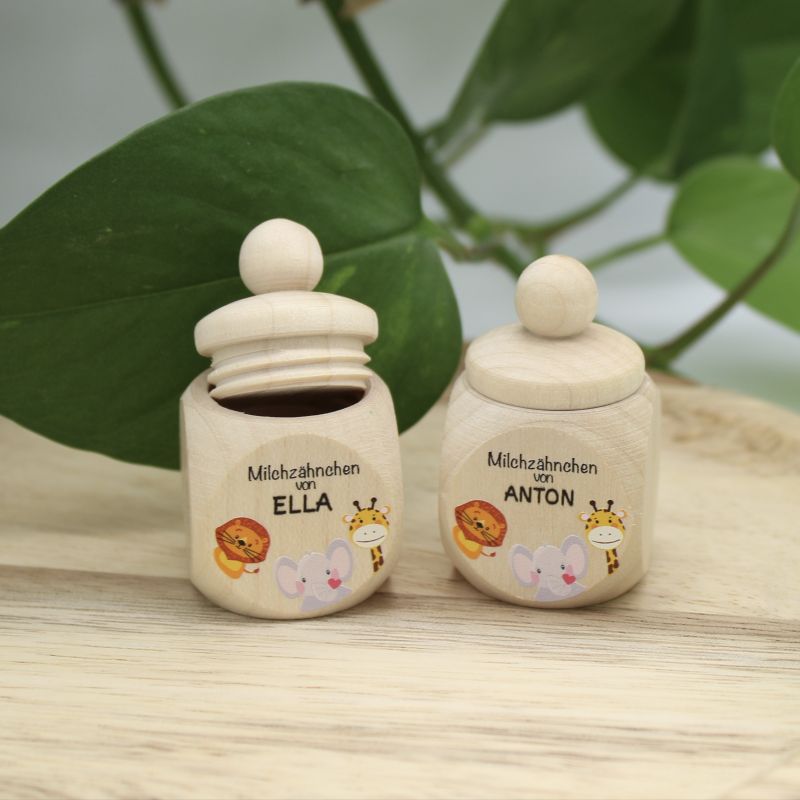 So süß! Diese Milchzahndose aus massivem Buchenholz bewahrt die ersten Zähnchen deines Kindes für immer auf. Mit 15x12x4cm Größe und integriertem Fotohalter (12,6x8,9cm) - hier kannst du ein persönliches Bild deines Kindes platzieren. Im Set enthalten: Zahnbox, Pinzette, Fläschchen, Watte, Aufkleber und magnetische Archivkarte für Namen und Daten. Jeder Zahn bekommt sein eigenes Fach mit Datumsfeld. Extra Fächer für die ersten Haare und andere Erinnerungsstücke. Einfach die Zähnchen vorher in kochendem Wasser desinfizieren, trocknen und sicher verwahren. Das perfekte Geschenk zur Geburt, Taufe oder zum ersten Geburtstag - eine wunderschöne Erinnerung an die Kindheit die ein Leben lang hält!