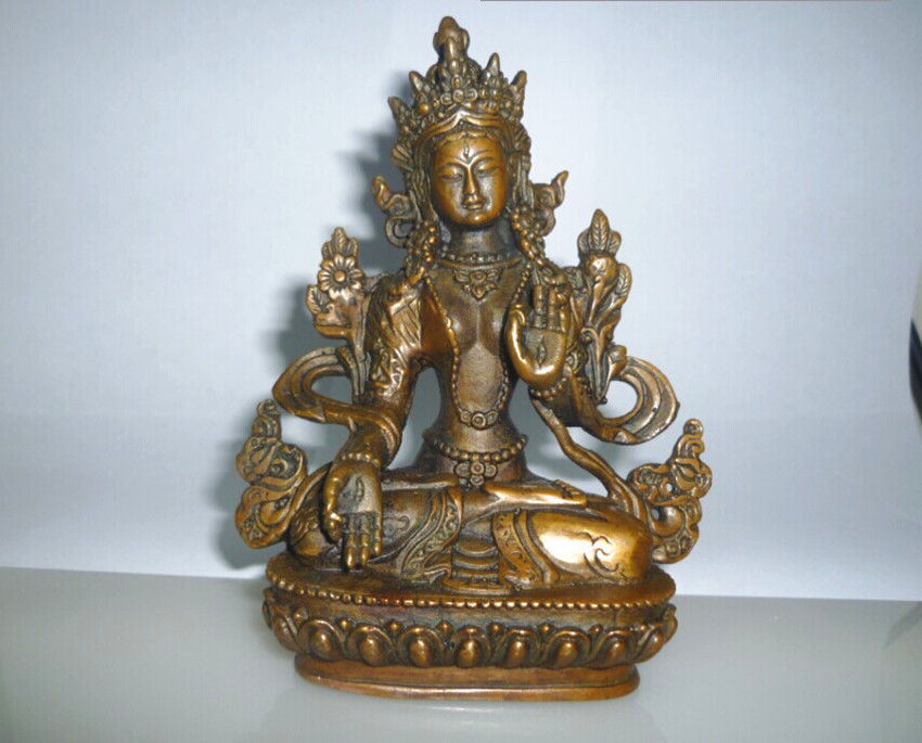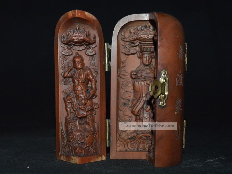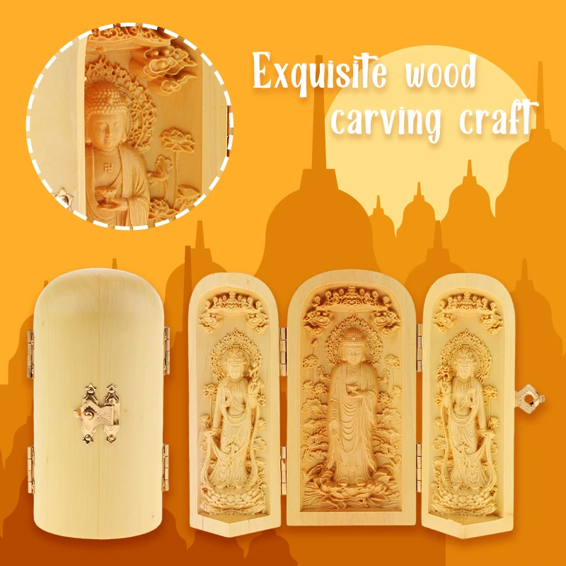 Tibetische Buddha Statue Box Aus Buchsbaum - Kwan-yin Schnitzerei Mit Lotusblume | 10cm Höhe
