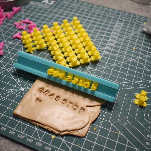 Aus hochwertigem Kunststoff mit tief gravierten Buchstaben für scharfe, klare Prägungen. Perfekt für Namen, Daten oder dekorative Designs auf Ton, Keramik oder Polymer-Ton.