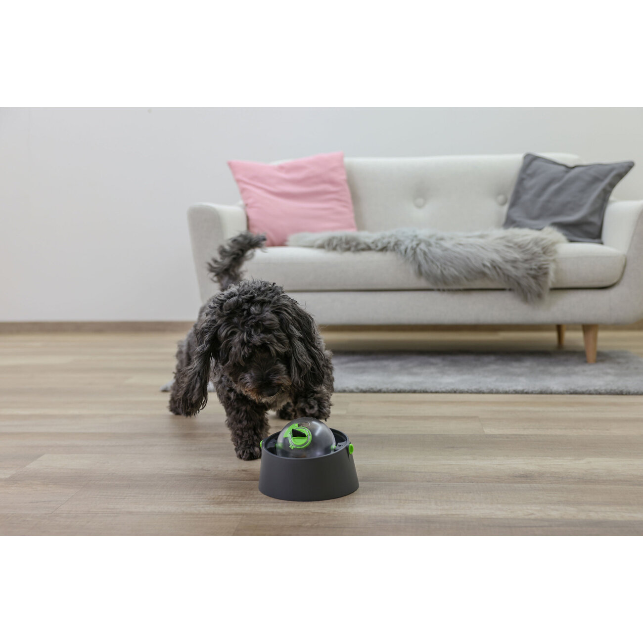 Also dieser Hundespielzeug-Ball von Bukuhlio ist echt genial! Der kombiniert nämlich zwei super wichtige Dinge: Intelligenztraining und langsames Fressen. Wenn dein Hund immer sein Futter runterschlingt wie ein Staubsauger - damit ist Schluss!\n\nDas coole Design mit den zwei verstellbaren Öffnungen sorgt dafür, dass die Leckerlis nur langsam rauskommen. Dein Hund muss sich echt anstrengen - mit der Nase stoßen, mit der Pfote rollen, einfach kreativ werden. Das reduziert das Schlingen um bis zu 50% und beugt so Blähungen und Verdauungsproblemen vor.\n\nWas die Qualität angeht: Aus unzerstörbarem ABS-Material, selbst für starke Kauer geeignet. Die abgerundeten Kanten schonen die Zähne und das luftdurchlässige Design verhindert Feuchtigkeit im Inneren.\n\nMein Hund ist total verrückt nach dem Teil! Statt sich zu langweilen, ist er jetzt stundenlang beschäftigt und trainiert dabei seinen Geruchssinn und sein Köpfchen. Perfekt für Tage, an denen man mal nicht so lange Gassi gehen kann oder einfach wenn der Hund mehr Beschäftigung braucht.\n\nReinigen ist auch super easy - der Ball lässt sich komplett zerlegen und ist in Sekunden gespült. Keine Futterreste, keine Bakterien. Also wenn du deinem Hund was Gutes tun willst und gleichzeitig deine Ruhe haben möchtest - damit liegst du absolut richtig!