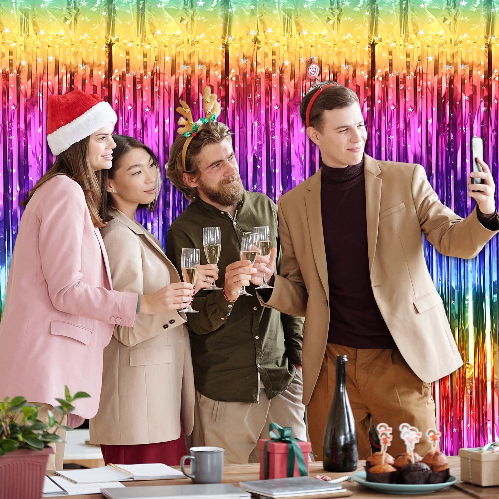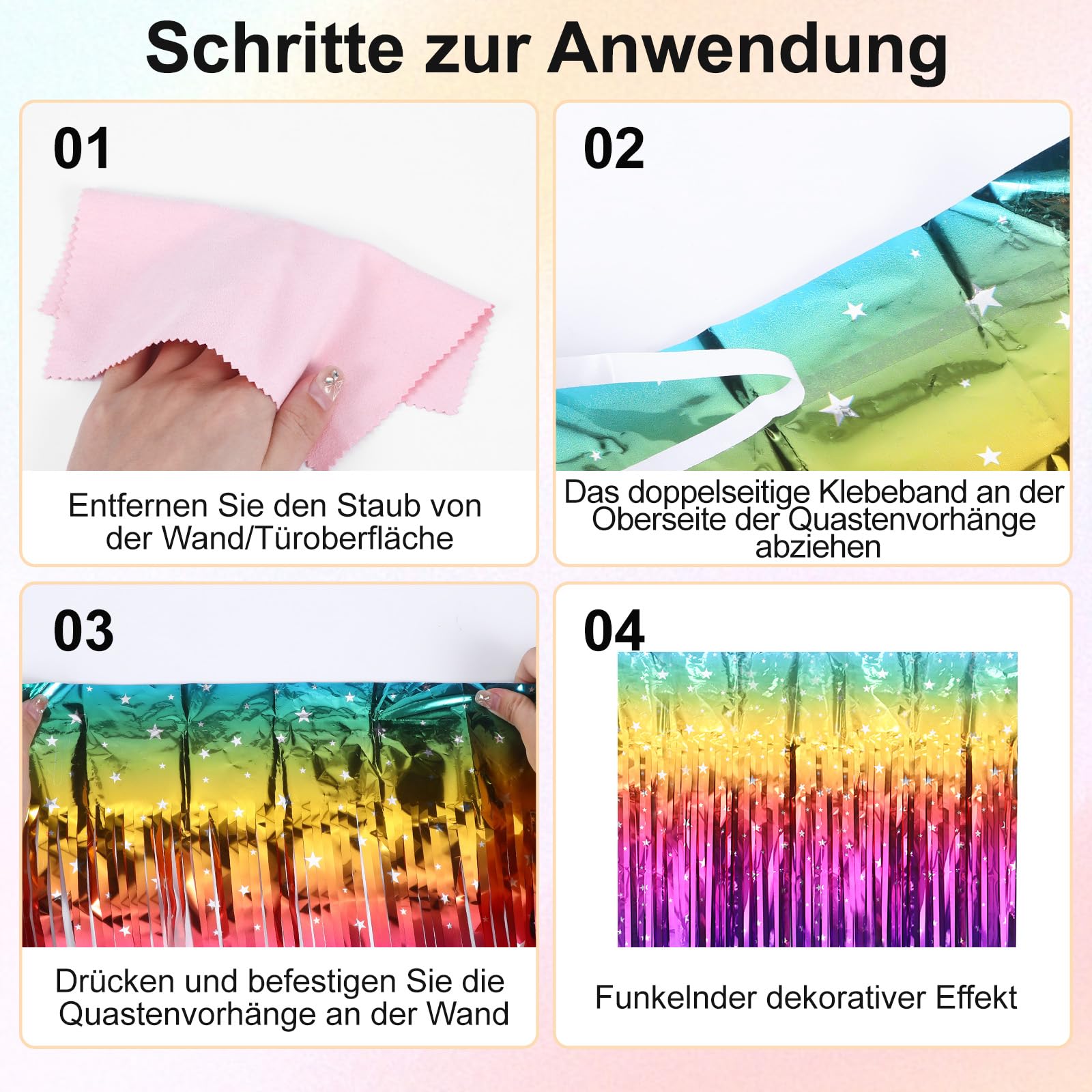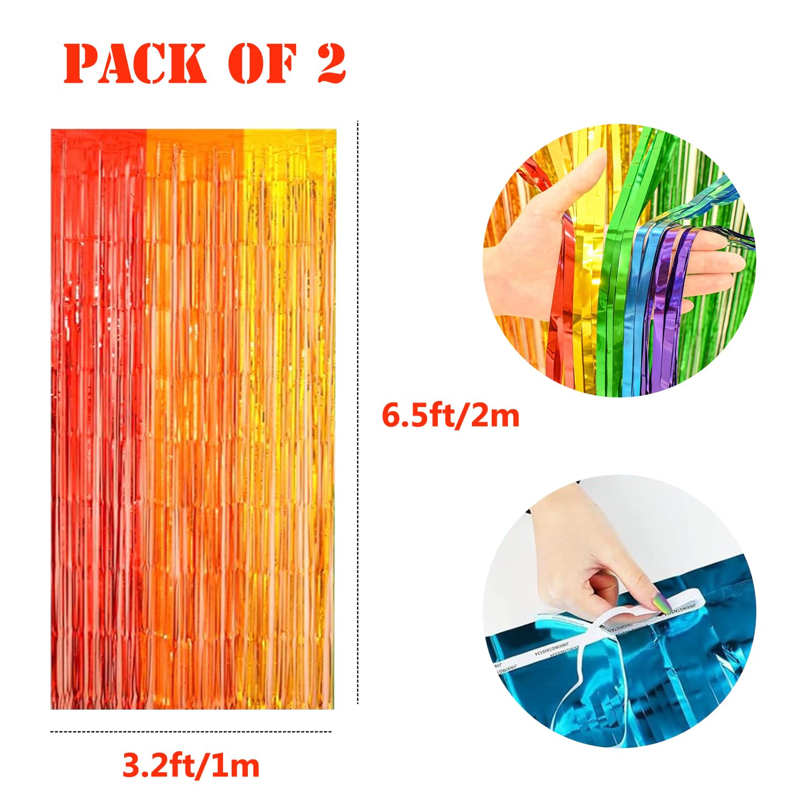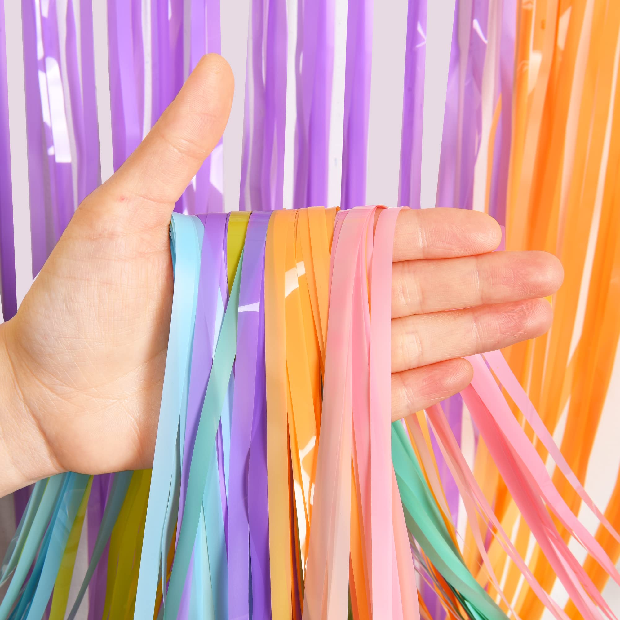 3 Stück Lametta Vorhänge Bunt - Dopamin Regenbogen Deko Für Party & Foto-Hintergrund