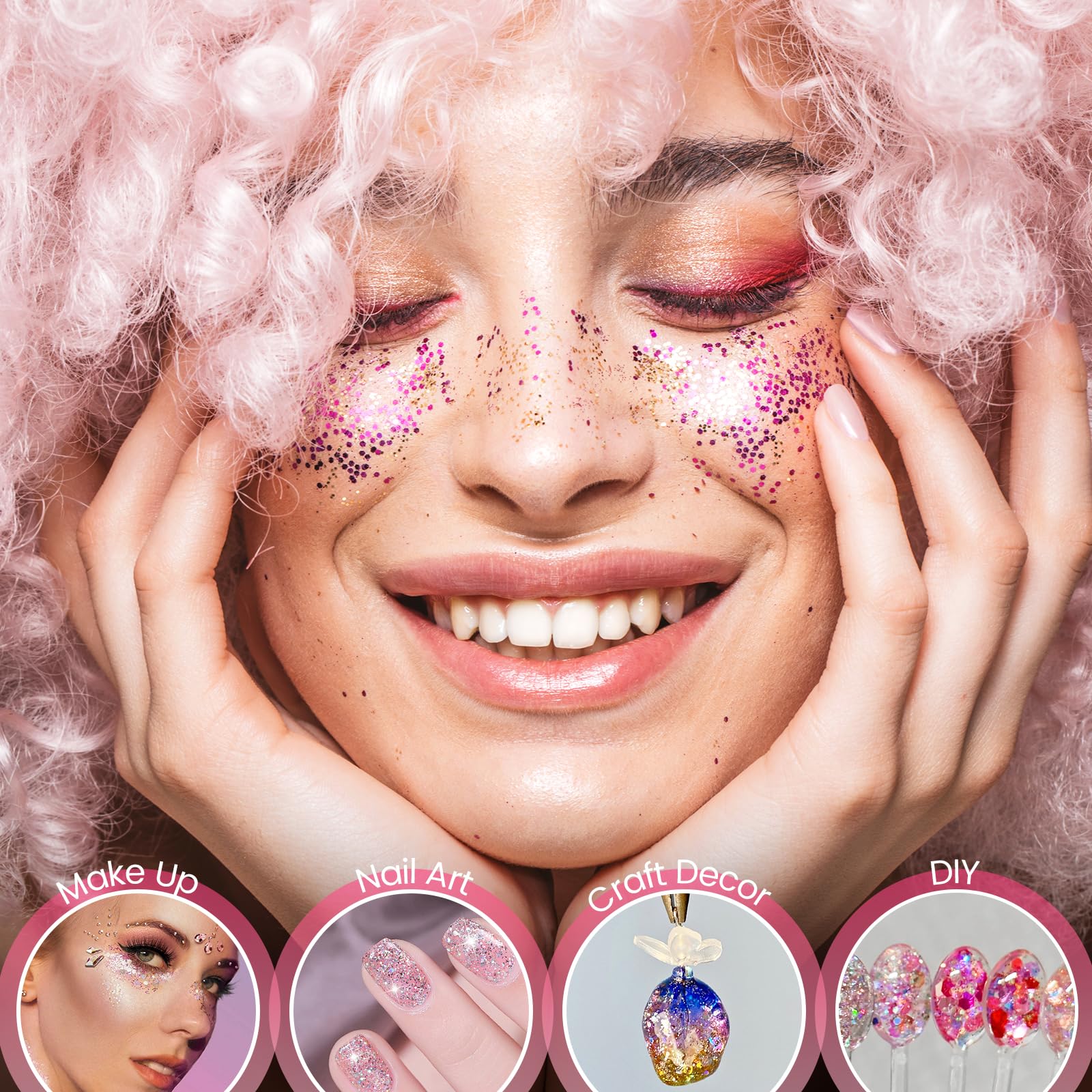 Funkel, funkel, kleiner Glitzer! Dieses 8-teilige Set bringt ordentlich Glamour in dein Leben. Perfekt für Bastelprojekte, Make-up oder Nailart - der Kreativität sind keine Grenzen gesetzt!\\n\\nWas ist drin? 8 Gläser mit superfeinem Glitzerpulver in verschiedenen Farben. Je Glas etwa 7,6g - genug für viele Projekte! Aus sicherem PET-Material, auch für Kinder geeignet.\\n\\nAnwendung? Ganz easy: Erst Kleber oder Vaseline auftragen, dann Glitzer drauf, trocknen lassen - fertig! Lässt sich später easy mit Wasser entfernen.\\n\\nEinsatzgebiete: Harzschmuck, Grußkarten, Slime, Gesichts-Make-up, Haar-Glitzer, Nageldesign - eigentlich überall, wo's glitzern soll!\\n\\nBesonders bei Festivals oder Partys der absolute Hit. Aber Vorsicht beim Öffnen - nicht dass der ganze Glitzer durch die Luft fliegt!