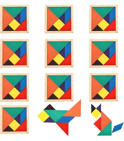 YceLon 10er Set Holztangram - Bunte Lernpuzzles Für Kinder Ab 4 Jahren