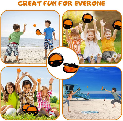 Jedes Set enthält 2 Schläger und 1 Ball. Die Schläger sind aus leichtem ABS-Kunststoff und liegen gut in kleinen Händen. Die knalligen Farben machen Lust auf Spielen!