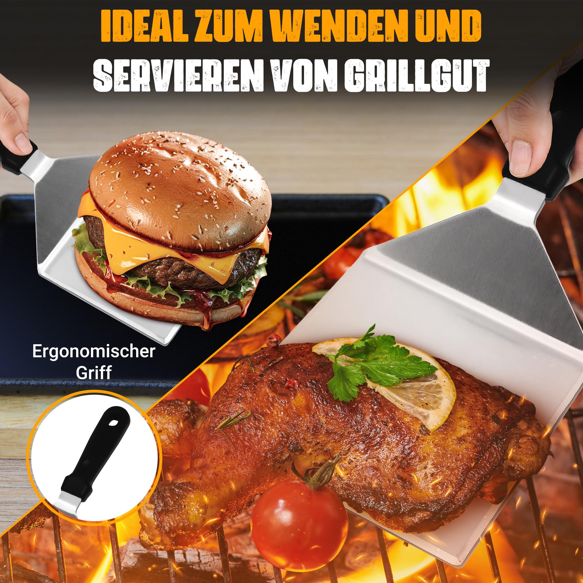Grill-Fans, dieses Smash Burger Set ist ein echter Game-Changer! Die Burgerpresse aus Edelstahl (11,2x11,2cm) macht perfekt flache Patties - genau richtig für knusprige Ränder! Der ergonomische Griff liegt super in der Hand - keine Verbrennungen! Das 30cm Grillspatel wendet alles sicher - ob Burger, Steak oder Fisch. Komplett spülmaschinenfest - einfach rein und fertig! Perfekt für Gasgrill, Induktion oder Pfanne - vielseitig einsetzbar. Macht professionelle Burger wie im Restaurant - einfach und schnell! Ob für Gartenparty oder Familienabend - mit diesem Set wird jedes Essen特别! Bestell jetzt und werde zum Burger-Meister!