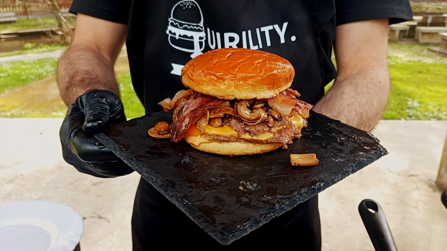 Smash Burger Set Edelstahl - Burgerpresse 11,2cm & Grillspatel 30cm