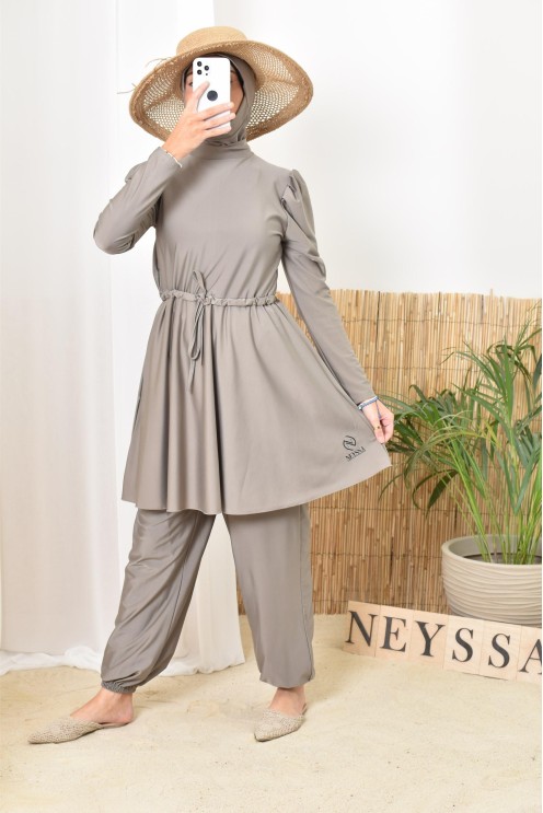 Burkini Set Damen 3-teilig - Langärmlig Mit Schwimmhose & Kopftuch