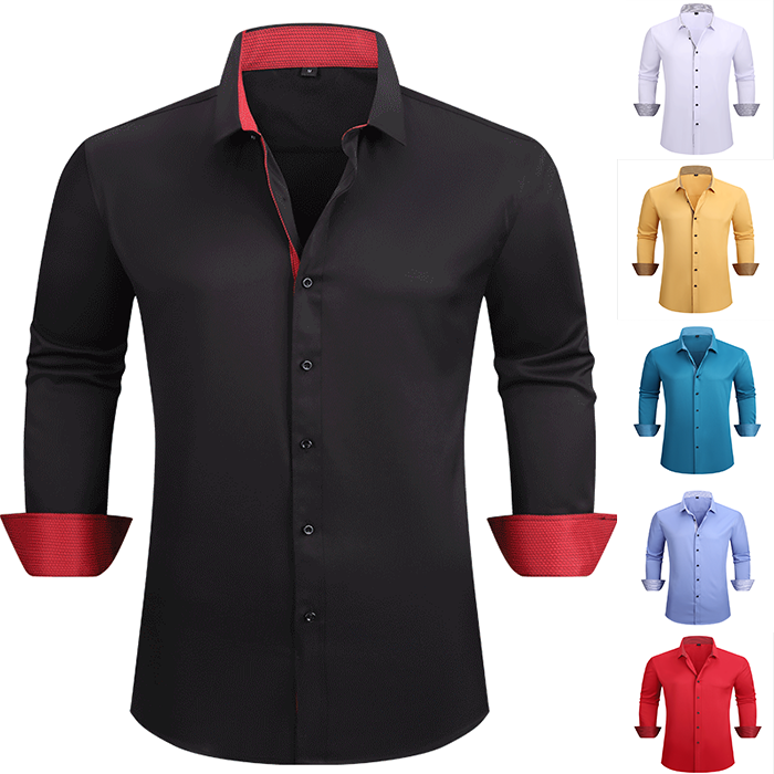 Herren Business Hemd Langarm - Elegante Freizeit Bluse In Reinfarbe