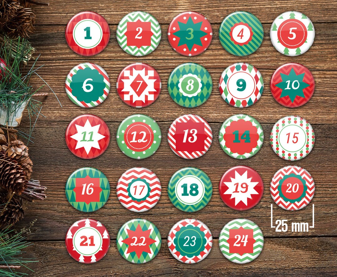 24 Adventskalender Zahlen-Buttons Mit Wichtel-Figuren - Handgefertigte Weihnachtsdekoration