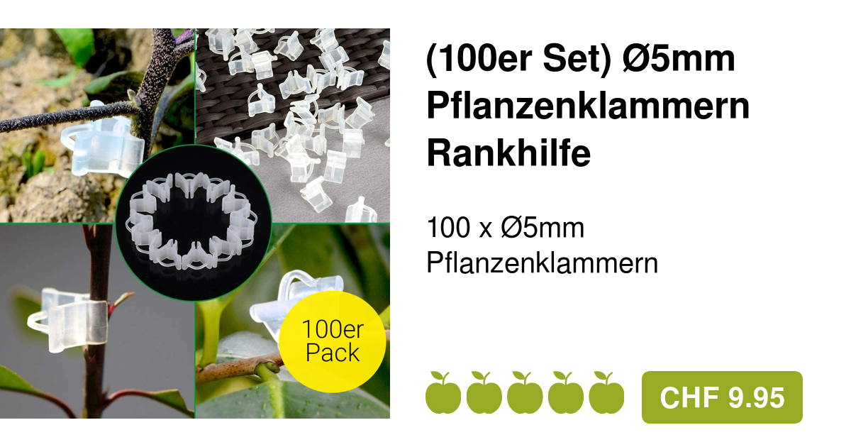 Diese praktischen Orchideen-Klammern von BuyWeek sind ein Must-Have für jeden Hobby-Gärtner! 100 Stück im Set, aus robustem Kunststoff in transparent. Größe: 3,5x3,5cm - groß genug um Stiele zu stützen ohne sie zu beschädigen. Einfach zu befestigen und wieder zu lösen. Perfekt für Orchideen, Tomaten, Gurken, Melonen, Kürbisse, Blumen und Paprika. Fördern das gesunde Wachstum und erhöhen die Überlebensrate von Sämlingen. Aber nicht nur für Pflanzen: Auch super um Lichter an Weihnachtskränzen zu befestigen oder als Haarspange. Vielseitig einsetzbar und extrem praktisch. Mit diesen Clips bringst du Ordnung in deinen Garten und hilfst deinen Pflanzen beim optimalen Wachstum. Einfach geniales Gartenzubehör zum kleinen Preis!