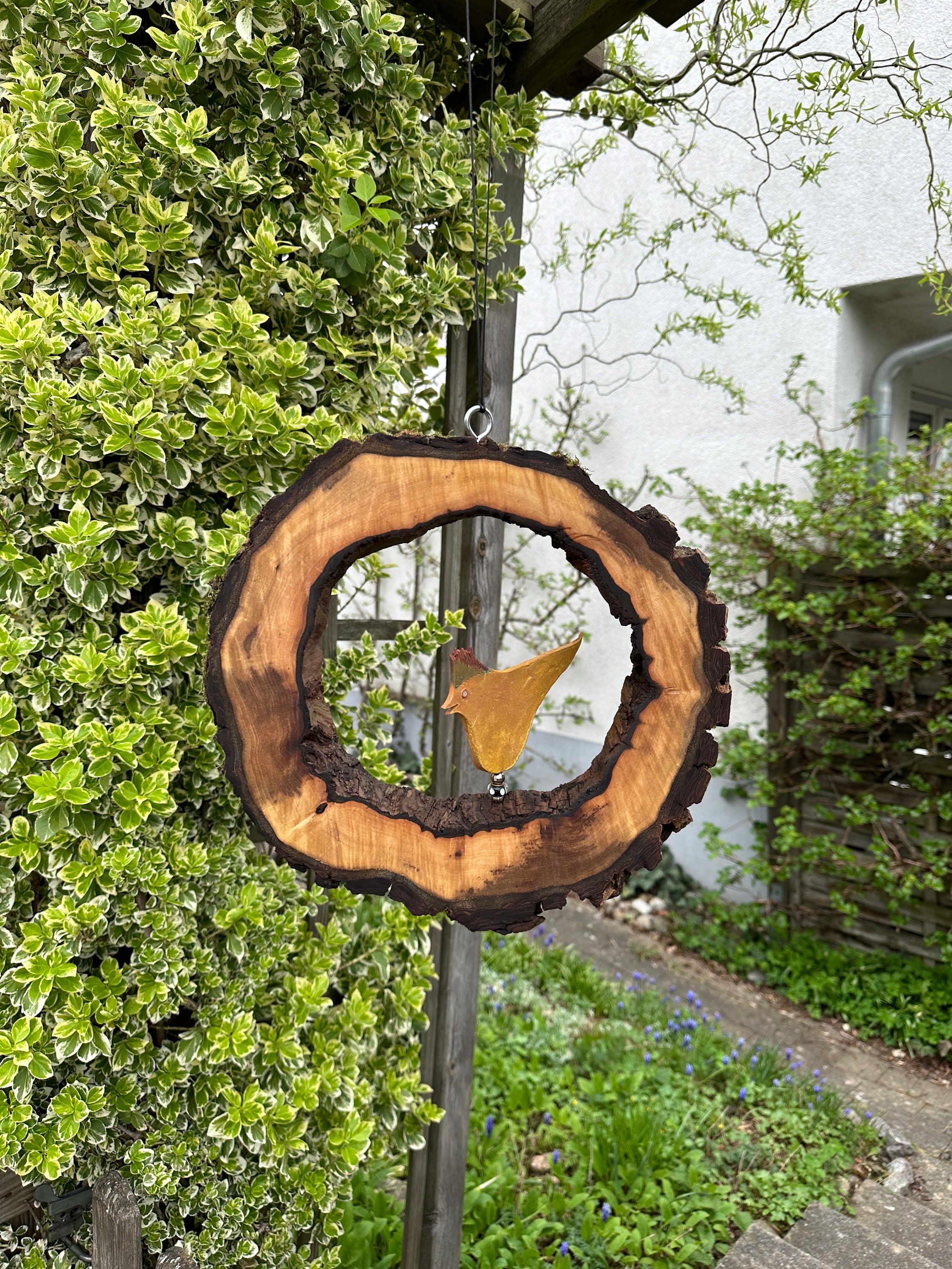 CAXUSD Windspiel Mit Vogel - Massivholz Türklingel Mit Messingglocke