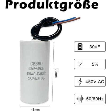 CBB60 Kondensator 30uF 450V - Motorbetriebskondensator Mit 18cm Kabel