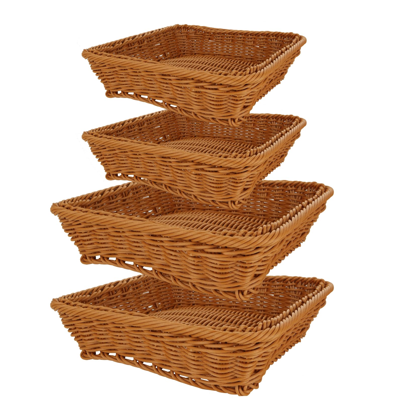 Das 4-teilige Set besteht aus zwei Größen: 30x20x10cm und 40x30x10cm - perfekt abgestimmt für verschiedene Einsatzmöglichkeiten. Ob für Brot, Brötchen, Obst oder Snacks - für alles ist der richtige Korb dabei.