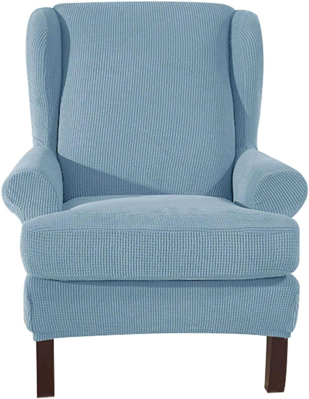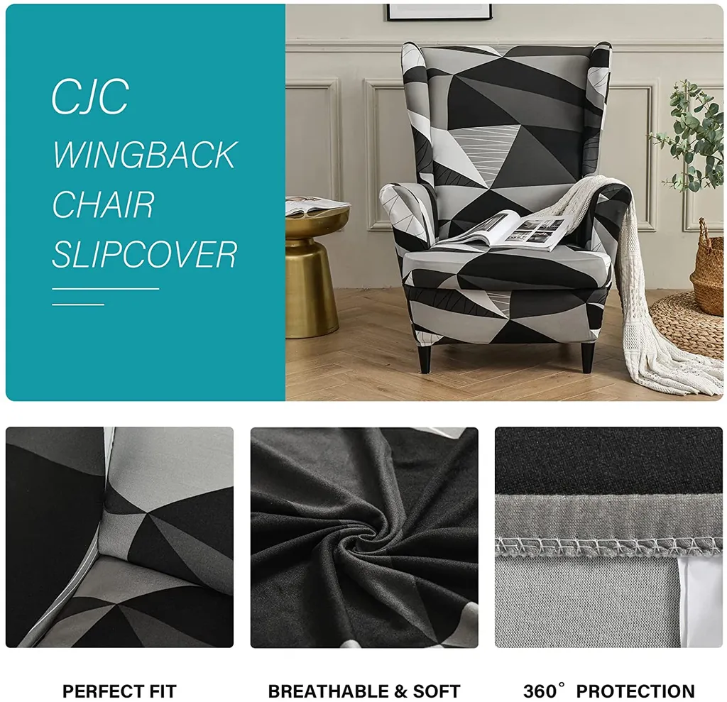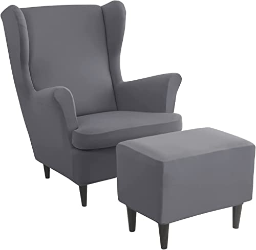CLGTY Ohrensessel Bezug 3-teilig + Hocker - Spandex Sesselüberzug Waschbar - Grün
