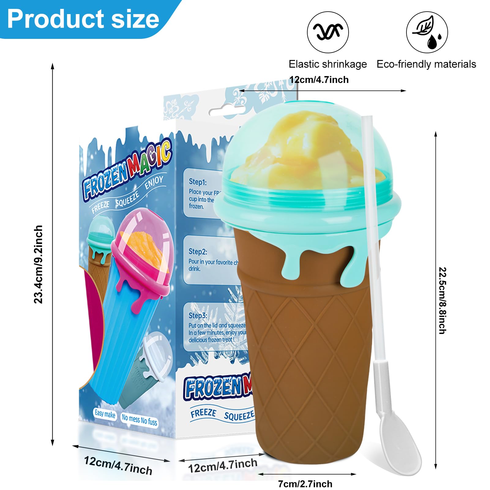 Wow, mit diesen Slush Bechern machst du dir ganz einfach deine eigenen Eisdrinks zu Hause! 500 ml Fassungsvermögen - perfekt für große Portionen. Einfach 4-6 Stunden in den Gefrierschrank stellen, dann Saft rein und 1-3 Minuten drücken - schon hast du leckeren Slush! Im Set: 2 Slush-Becher, 2 Löffel, Becherbürste und Strohbürste. Aus lebensmittelechtem Silikon und PP-Material - absolut sicher und umweltfreundlich. Temperaturbeständig von -40°C bis 120°C. Einfach zu reinigen - nach Gebrauch abwaschen und wiederverwenden. Perfekt für Partys, Familien oder als Geschenk für Kinder. Probiere verschiedene Säfte, Limonaden oder Joghurt aus! Einfach gefrieren lassen, mischen und genießen - so einfach war Slush-Eis machen noch nie!