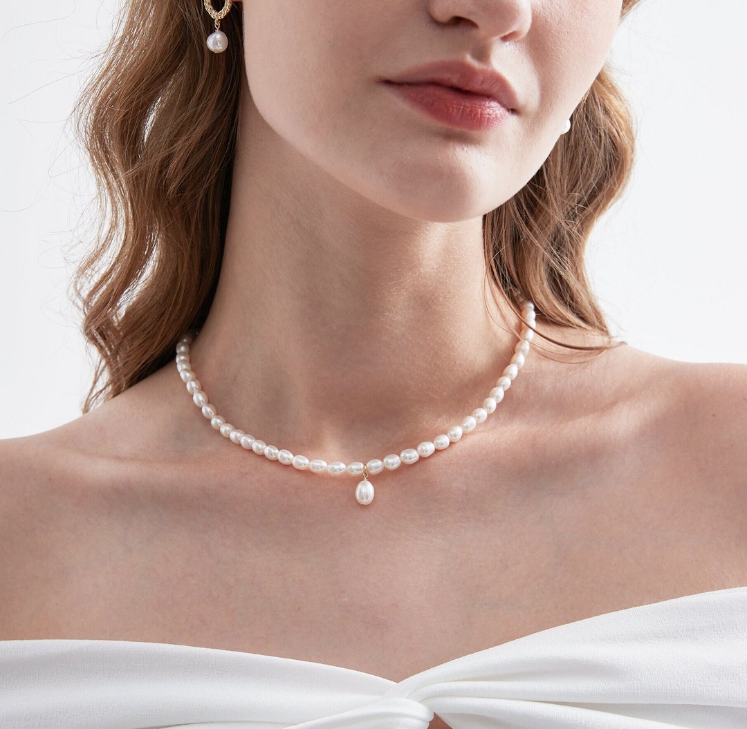 COAI Perlen Halskette 925 Silber - 7mm Süßwasserperle Anhänger Für Damen