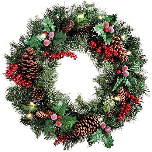 COSTWAY Beleuchteter Weihnachtskranz 60cm - Schneebedeckt Mit 35 LED Lichtern, Batteriebetrieben Für Innen & Außen