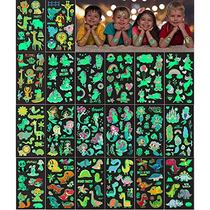 Mega cool - Tattoos die leuchten! Dieses Set von COYUN hat 10 Blätter mit total süßen Motiven: Weltraum, Einhörner, Dinosaurier und mehr. Die Tattoos leuchten nachts blau - wie magisch! Einfach anzubringen: Motiv ausschneiden, aufkleben, nass machen und Folie abziehen. Halten mehrere Tage und sind absolut ungefährlich. Perfekt für Kindergeburtstage, Partys oder als Mitgebsel. Die Kids werden begeistert sein! Ob auf Arm oder Bein - überall ein Hingucker. Mach die nächste Party zum unvergesslichen Erlebnis!