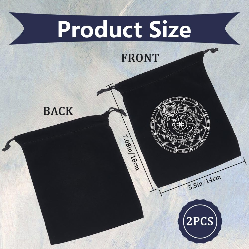 Für alle Tarot- und Energie-Arbeits-Fans! Diese süßen Samtbeutel im 2er-Set sind perfekt um deine Tarotkarten sicher aufzubewahren und zu transportieren! In grauer Farbe mit sechseckiger Form - sieht nicht nur hübsch aus, sondern schützt deine Karten auch vor Beschädigungen. Mit praktischem Kordelzug - einfach zuziehen und nichts geht verloren! Maße: 13x18cm (5x7 Zoll) - passen für die meisten Standard-Tarotdecks. Aus hochwertigem Samt gefertigt - weich, langlebig und waschbar! Super vielseitig: Nicht nur für Tarotkarten, sondern auch für Kristalle, Wahrsage-Würfel, Runen, Schmuck oder als kleine Kosmetiktäschchen. Perfekt für unterwegs, Reisen oder einfach zur ordentlichen Aufbewahrung daheim. Die Beutel strahlen eine besondere Energie aus und machen sich auch als Geschenk für gleichgesinnte Freunde super!
