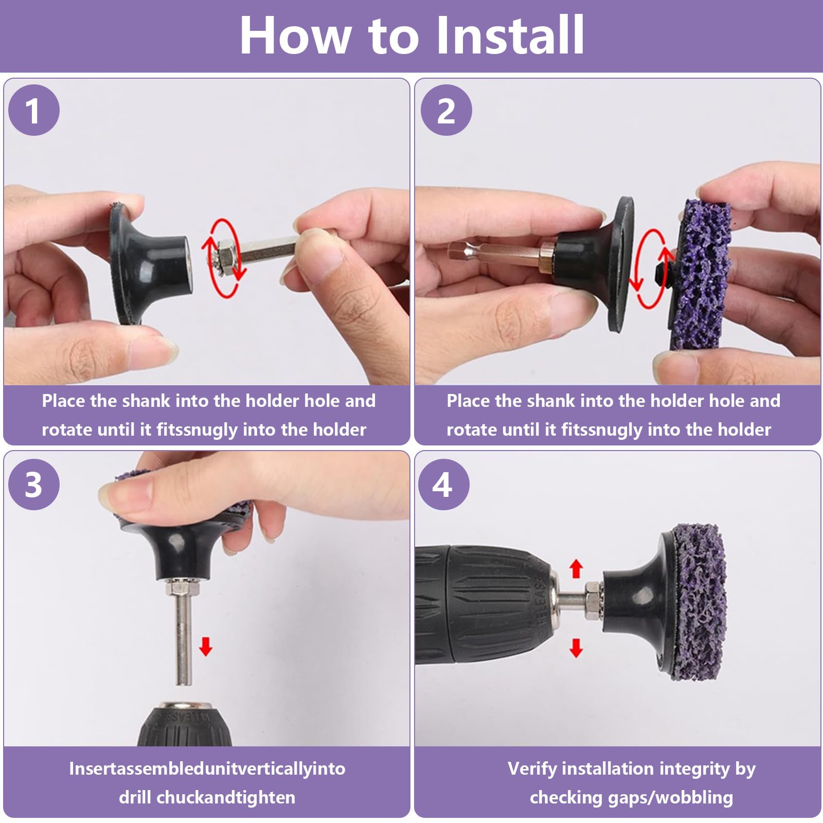 Handwerker und Heimwerker, dieses 50-teilige CSD Schleifscheiben-Set ist ein echter Alleskönner für deine Werkstatt! Enthalten sind 30 violette Schleifscheiben für hartes Schleifen und Präzisionsbearbeitung, 10 blaue für neutrale Reinigung und Rostentfernung, sowie 10 schwarze für flexible Reparaturen und Untergrundschutz. Jede Scheibe hat einen Durchmesser von 50 mm (2 Zoll) und eine Dicke von 15 mm. Mitgeliefert wird eine Gummi-Trägerplatte und zwei Zugstangen für einfache Montage. Die Scheiben unterstützen eine hohe Drehzahl von 22.000 U/min und sind kompatibel mit allen Bohrmaschinen und Geradschleifern mit 6,35 mm Aufnahme. Das praktische Schnellwechsel-Design ermöglicht blitzschnelles Wechseln zwischen verschiedenen Aufgaben. Perfekt zum Entfernen von Rost, Farbe, Schweißnähten, Oxidation und anderen Verunreinigungen. Geeignet für Eisen, Stahl, Edelstahl und verschiedene Metallmaterialien. Ob in der Automobilindustrie, im Schiffbau oder bei Möbelrestaurierung - dieses vielseitige Set deckt alle Schleif- und Reinigungsarbeiten professionell ab. Mit geringer Geräuschentwicklung und weniger Staub macht es jede Arbeit einfacher!