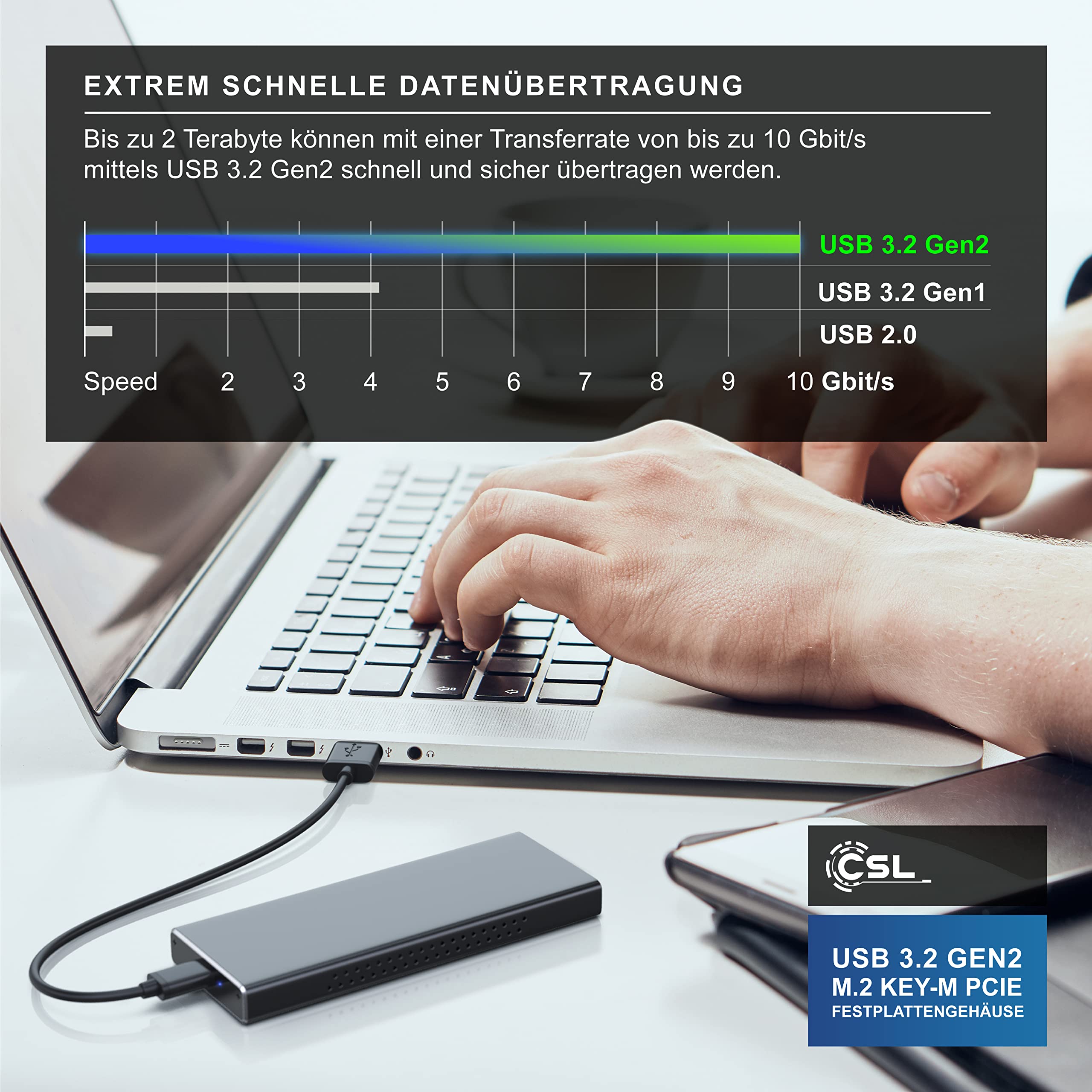 CSL M.2 SSD Gehäuse USB 3.2 Gen2 - 10 Gbit/s Für NVME Festplatten