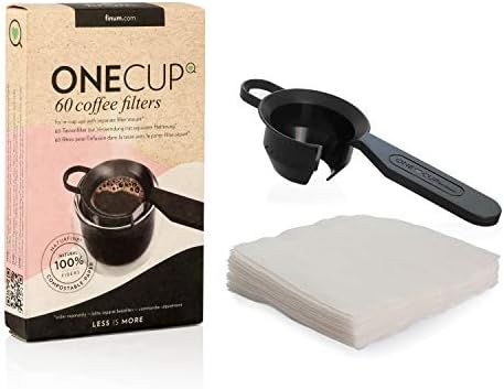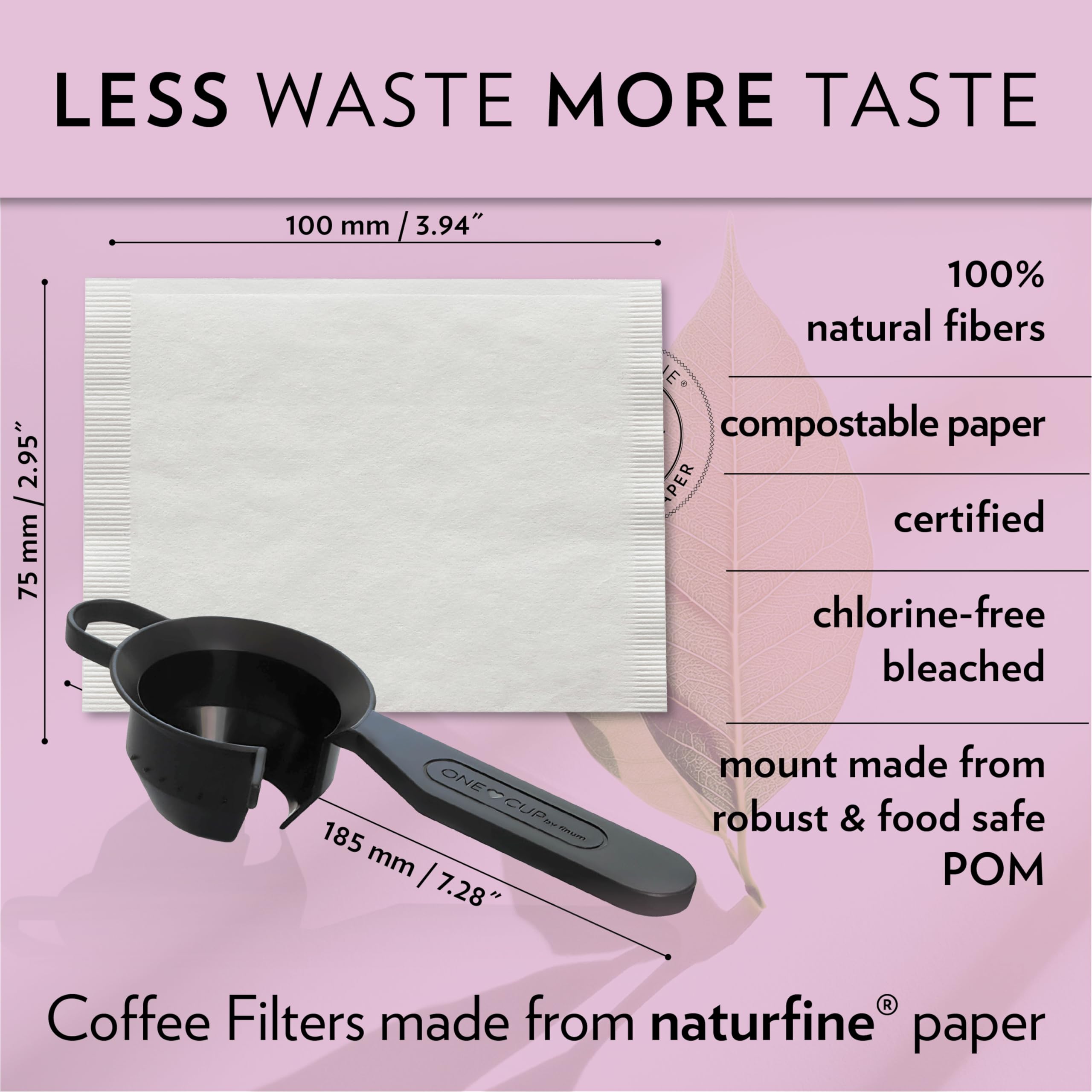 Finum ONE CUP Kaffeefilter Set – 60 Stück Kompostierbar + Halter Für Frischen Kaffee Ganz Ohne Maschine