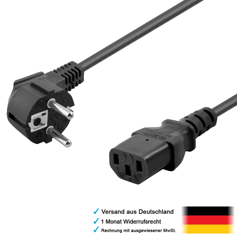 Nie wieder kabellos dastehen! Dieses praktische 2er Pack Netzkabel mit Schuko-Stecker (Typ F) und C5-Anschluss (auch Kleeblatt-Stecker genannt) ist deine Rettung in vielen Situationen. Mit 2 Meter Länge reicht es auch für schwer erreichbare Steckdosen. Perfekt für Laptop-Netzteile, Projektoren, Monitore, Drucker und sogar E-Scooter! Der abgewinkelte Stecker spart Platz hinter Möbeln und an Wandmontagen. Mit 18 AWG Leiterquerschnitt und bis zu 2,5 A bei 250 V ist das Kabel robust genug für den täglichen Einsatz. Nach VDE- und CE-Sicherheitsstandards zertifiziert - deine Geräte sind also bestens geschützt. Ob im Büro, Homeoffice oder unterwegs - mit diesen beiden Kabeln bist du immer auf der sicheren Seite. Ein Kabel für die Arbeit, eines für zu Hause - oder beide für dein Setup! Einfach einstecken und loslegen!