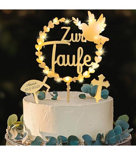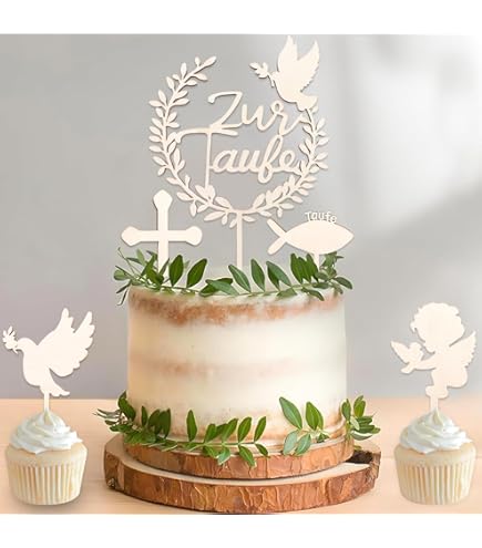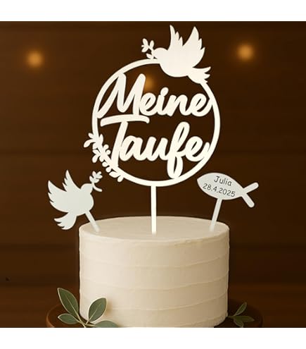 Mach die Tauf-Torte zu etwas Besonderem! Dieser wunderschöne Cake Topper mit dem Schriftzug 'Zur heiligen Taufe' ist der perfekte Blickfang für deine Torte. Hergestellt aus 3mm Acryl oder 4mm Holz - sauber lasergeschnitten für perfekte Kanten. Maße: 14x13 cm plus 5 cm lange Einsteckspieße. Die weiße oder graue Farbe passt zu jeder Torten-Dekoration. Einfach in die Torte stecken - und schon wird aus einer normalen Torte ein festliches Kunstwerk. Made in Germany - Qualität, auf die du dich verlassen kannst! Perfekt für Tauf-Feiern, ob groß oder klein. Dieses besondere Detail wird allen Gästen in Erinnerung bleiben und auf den Fotos wunderschön aussehen. Ein wertvolles Andenken an diesen besonderen Tag - denn die Taufe ist ein einmaliges Ereignis, das eine besondere Dekoration verdient!