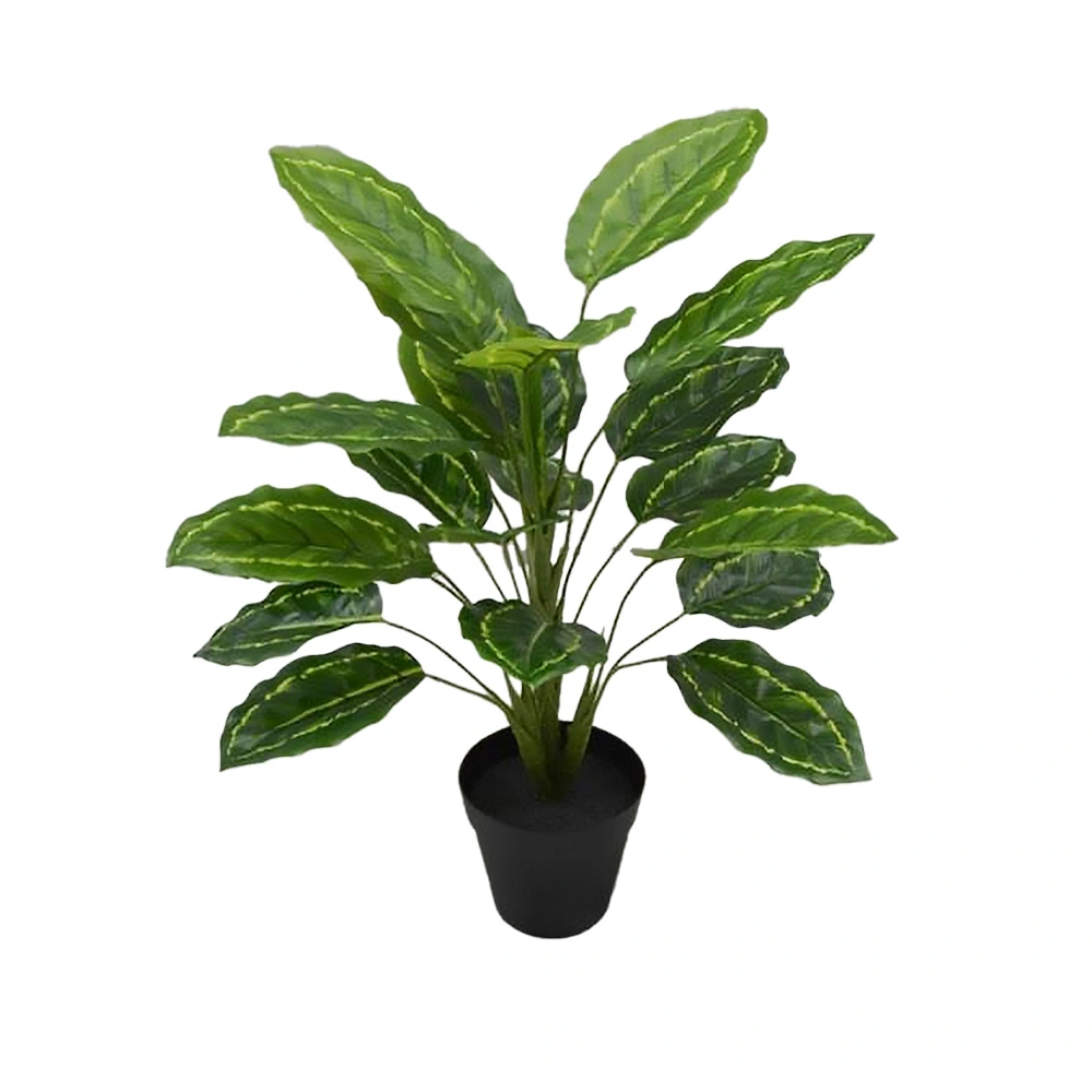 Grün ohne Pflegeaufwand - diese künstliche Calathea bringt Leben in deine vier Wände! Mit ca. 40cm Höhe und 32cm Durchmesser ist sie ein idealer Blickfang für Regal, Sideboard oder Bürotisch. Komplett im schwarzen Kunststofftopf geliefert - einfach auspacken, die Blätter zurechtbiegen und schon hast du eine perfekte Dekoration! Aus hochwertigem Kunststoff gefertigt, sieht sie täuschend echt aus und behält immer ihr frisches Aussehen. Kein Gießen, kein Düngen, kein Umtopfen - einfach hinstellen und genießen! Perfekt für dunkle Ecken, wo echte Pflanzen nicht überleben würden, oder für alle ohne grünen Daumen. Auch ideal für Büros, Wartezimmer oder Geschäftsräume. Weil Grün einfach gut tut - und mit dieser Kunstpflanze hast du immer eine gepflegte Umgebung ohne jeglichen Aufwand!