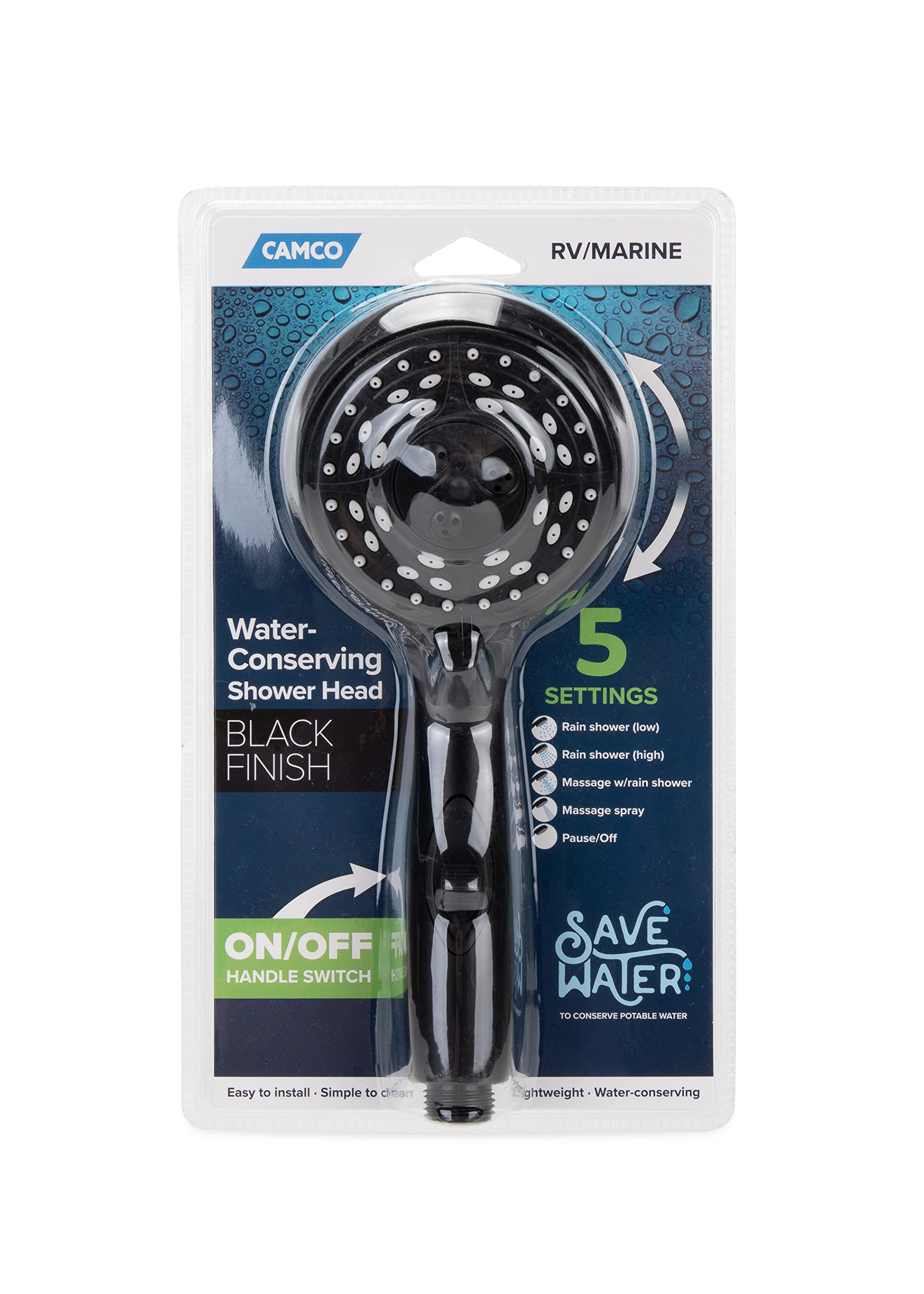 Camco Wohnmobil Duschkopf Mit Ein/Aus Schalter - 5 Strahlarten Für Wassersparendes Duschen