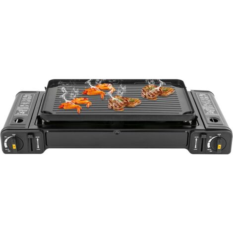 Perfektes Kocherlebnis in der Natur? Dieser 2-flammige Campingkocher macht's möglich! Mit je 2,3 KW pro Brenner - also insgesamt 4,6 KW Power für schnelles Kochen und Grillen. Aus robustem Edelstahl 430 mit Antihaftbeschichtung, absolut korrosionsbeständig und langlebig. Das kompakte Design (24x23x14,5 cm) ist faltbar und super leicht zu transportieren. Mit praktischem Tragegriff und rutschfesten Füßen für sicheren Stand. Die beiden Brenner können unabhängig voneinander geregelt werden - koche deine Suppe währenddessen das Fleisch brutzelt! Perfekt für Camping, Gartenpartys, Picknicks oder sogar den Einsatz in der Freiluftküche. Einfache Handhabung: Adapter an Gasflasche anschließen, Regler drehen, Zünder betätigen - fertig! Maximaler Topfdurchmesser 20 cm bei gleichzeitiger Nutzung beider Brenner. Mit EU-Standard Anschluss für handelsübliche Gasflaschen (nicht im Lieferumfang). Dein zuverlässiger Begleiter für alle Outdoor-Kochabenteuer!