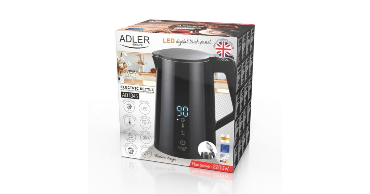 ADLER Camry Wasserkocher 1,7 Liter - Edelstahl Mit Temperaturregelung