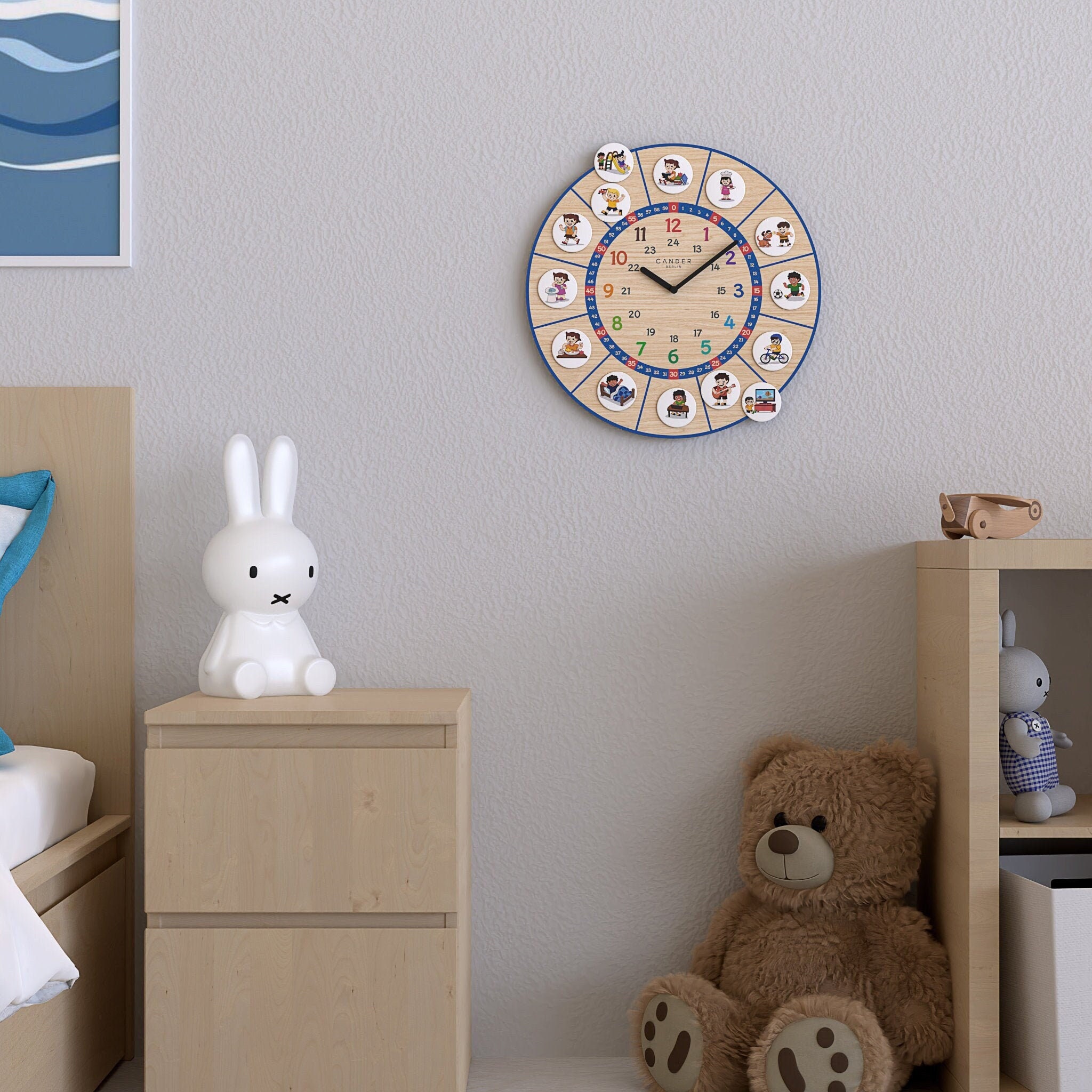 Kinder Lernuhr 25cm Cander Berlin - Lautlose Wanduhr Mit Sternen