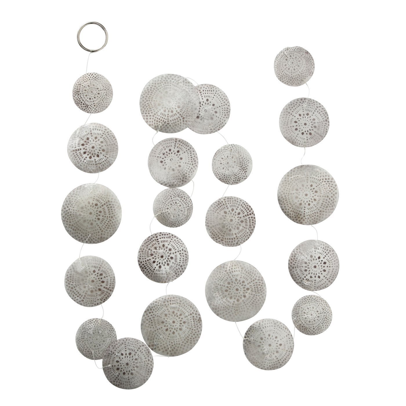 Maritimes Flair für dein Zuhause! Diese wunderschöne Capiz-Girlande von Boltze Home bringt mit ihren echten Capizmuschel-Scheiben (Placuna placenta) natürlichen Perlmuttglanz in deine vier Wände. Die 120cm lange Kette mit Scheiben von ca. 7,5cm Durchmesser reflektiert das Licht auf ganz besondere Weise und sorgt für lebendige, sanfte Effekte. Perfekt für Fenster, Wände, Regale oder Türrahmen im Boho-, Coastal- oder Skandi-Stil. Ob im Wohnzimmer, Schlafzimmer, Bad oder Wintergarten - die Girlande setzt überall elegante Akzente. Auch auf dem Balkon (in geschützter Lage!) sorgt sie für dezente Bewegung bei leichtem Luftzug. Die Girlande wird 3-fach sortiert geliefert - jedes Exemplar ist durch die natürliche Muschelstruktur ein echtes Unikat. Einfach solo aufhängen oder mit Lichterketten, Trockenblumen und anderen Naturmaterialien kombinieren. Leichte Pflege: Einfach mit einem weichen, trockenen Tuch entstauben. Bitte vor Nässe, starkem Wind und Stößen schützen. Übrigens: Die Girlande eignet sich auch super als Tischdeko für besondere Anlässe oder als stilvolles Geschenk für Deko-Fans. Einfach aufhängen und sofort die maritime Leichtigkeit genießen!