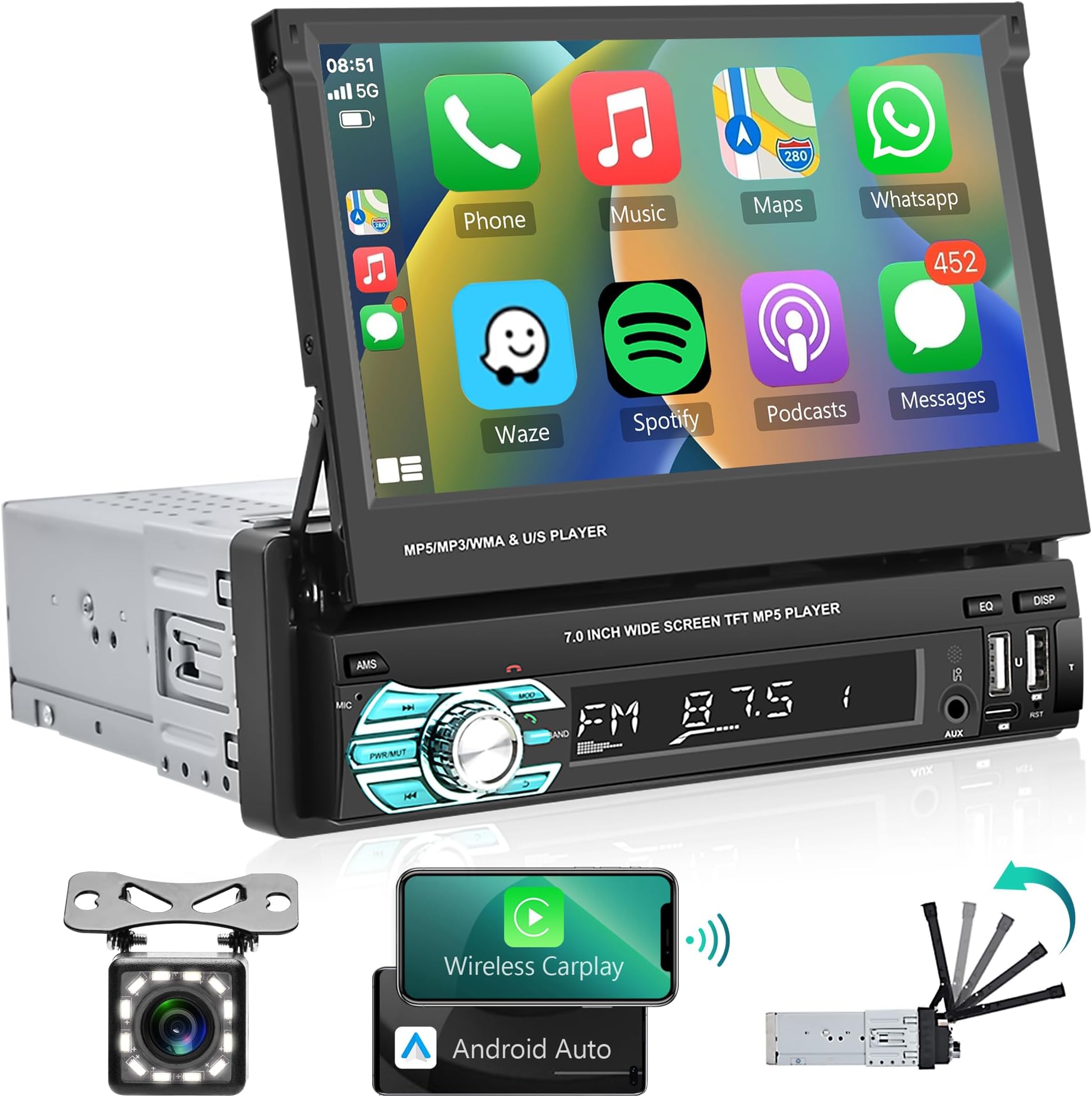 Inefala Wireless CarPlay Autoradio 1 DIN - 5 Zoll Touchscreen Mit Android Auto & Rückfahrkamera