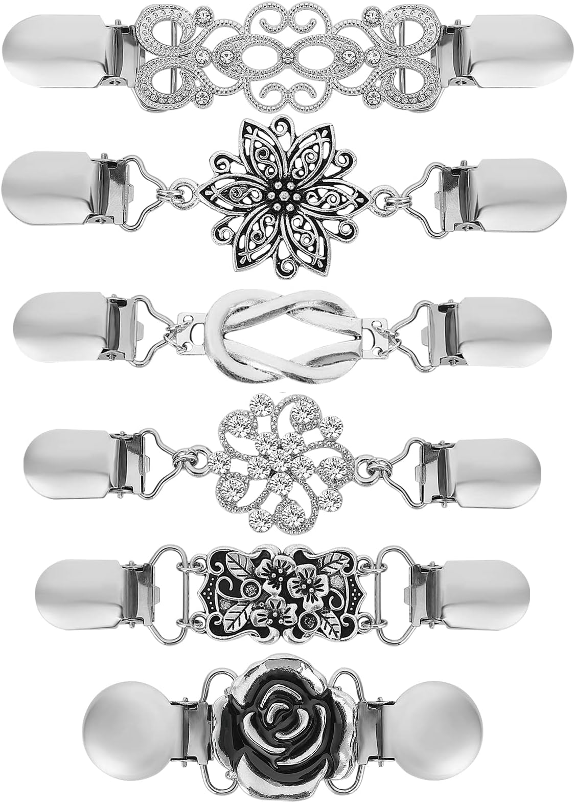 Verleihe deinen Outlets einen vintage-Charme mit diesen bezaubernden Cardigan Clips von SOIMISS! Das 4er Set in Silber mit funkelndem Strass-Details ist perfekt, um Pullover, Strickjacken oder Schals stilvoll zusammenzuhalten. Die Clips aus hochwertiger Metalllegierung sind robust, rostfrei und halten lange. Ob für einen romantischen Look oder als besonderes Accessoire - sie sind vielseitig kombinierbar und machen jedes Outfit komplett. Ein ideales Geschenk für modebewusste Frauen, die das Besondere lieben!