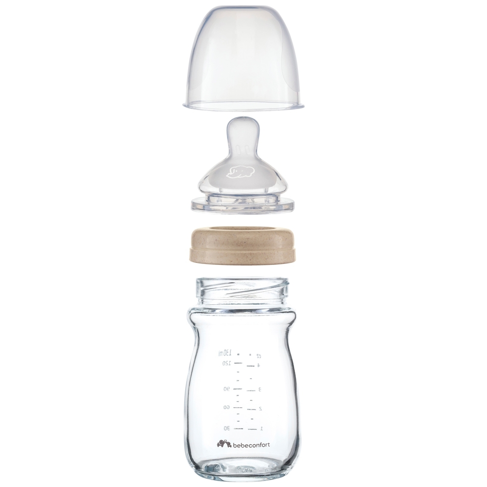 Das Bebeconfort Glasflaschen-Set ist perfekt für die ersten Lebensmonate deines Babys! Im Set sind 4 Glasflaschen dabei - zwei kleine mit 130ml und zwei große mit 270ml, plus einem physiologisch geformten Schnuller. Die Flaschen aus kratzfestem Glas sind super umweltfreundlich und der Schraubring besteht aus biologischen Rohstoffen. Die weichen Silikonsauger sind der natürlichen Brustwarze nachempfunden und gibt's in drei Größen: S ab Geburt, M ab 3 Monaten, L ab 6 Monaten. Das besondere Anti-Kolik-System mit doppelter Belüftung sorgt dafür, dass dein Baby weniger Luft schluckt - das beugt Koliken, Spucken und Sodbrennen vor. Alles ist spülmaschinenfest und macht die Flaschenfütterung zur entspannten Kuschelzeit für dich und dein Baby!