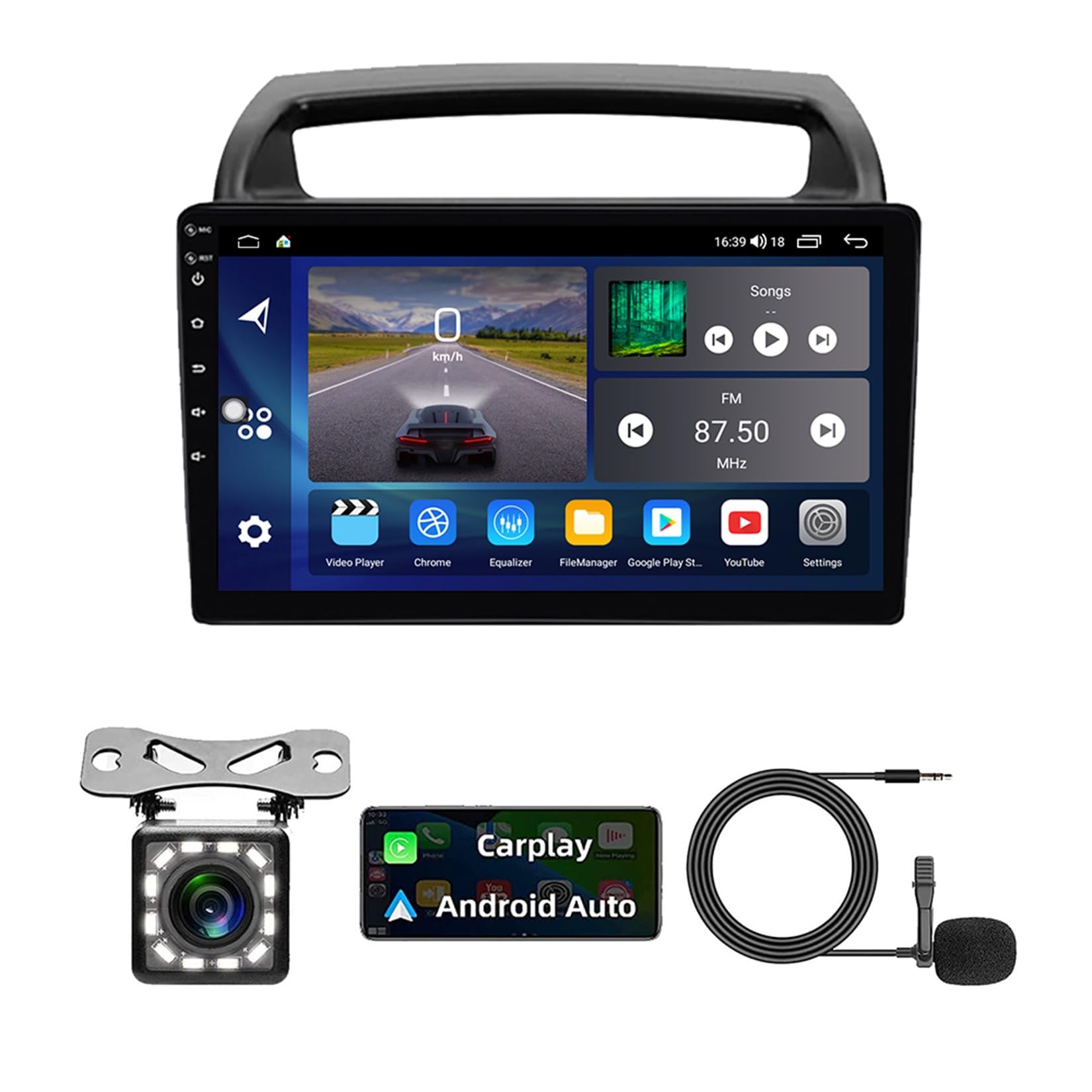 Der 1280x720 IPS Touchscreen ist super scharf und reagiert sofort. Bluetooth 5.0 für Freisprechanrufe, FM/AM Radio mit 18 Senderspeichern und Sprachsteuerung in über 100 Sprachen.