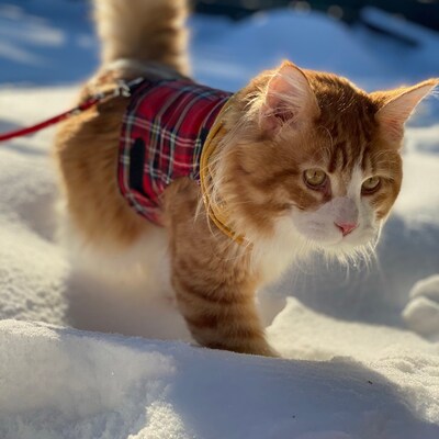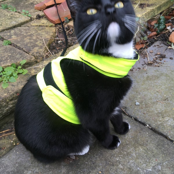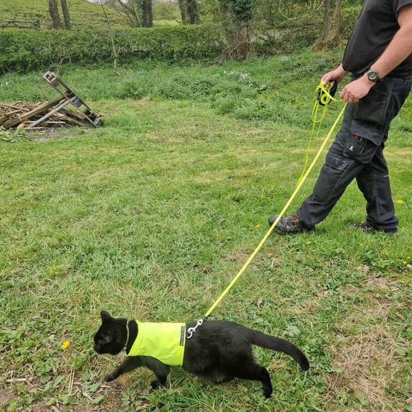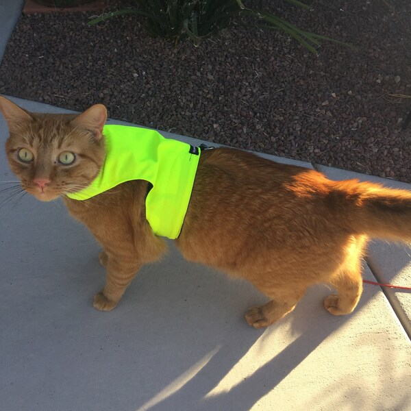 Endlich ein sicheres Geschirr für deine Katze! Das Mynwood Cat Jacket wird in Schottland von Maria persönlich handgefertigt - mit Liebe zum Detail! Anders als billige Geschirre kann deine Katze hier nicht einfach ausbüxen. Perfekt für Spaziergänge oder Ausflüge. Aus hochwertigen Stoffen, dreifach genäht und super stabil. Mit langen Klettverschlüssen für perfekten Sitz und einem sicheren Stahl-D-Ring für die Leine. In knalligem Orange für maximale Sichtbarkeit. Für ausgewachsene Katzen mit Brustumfang von 30,5 bis 50,8 cm. Maschinenwaschbar und extrem langlebig. Wichtig: Niemals unbeaufsichtigt damit draußen lassen! Von Katzenzüchtern getestet und empfohlen - deine Samtpfote wird's lieben!