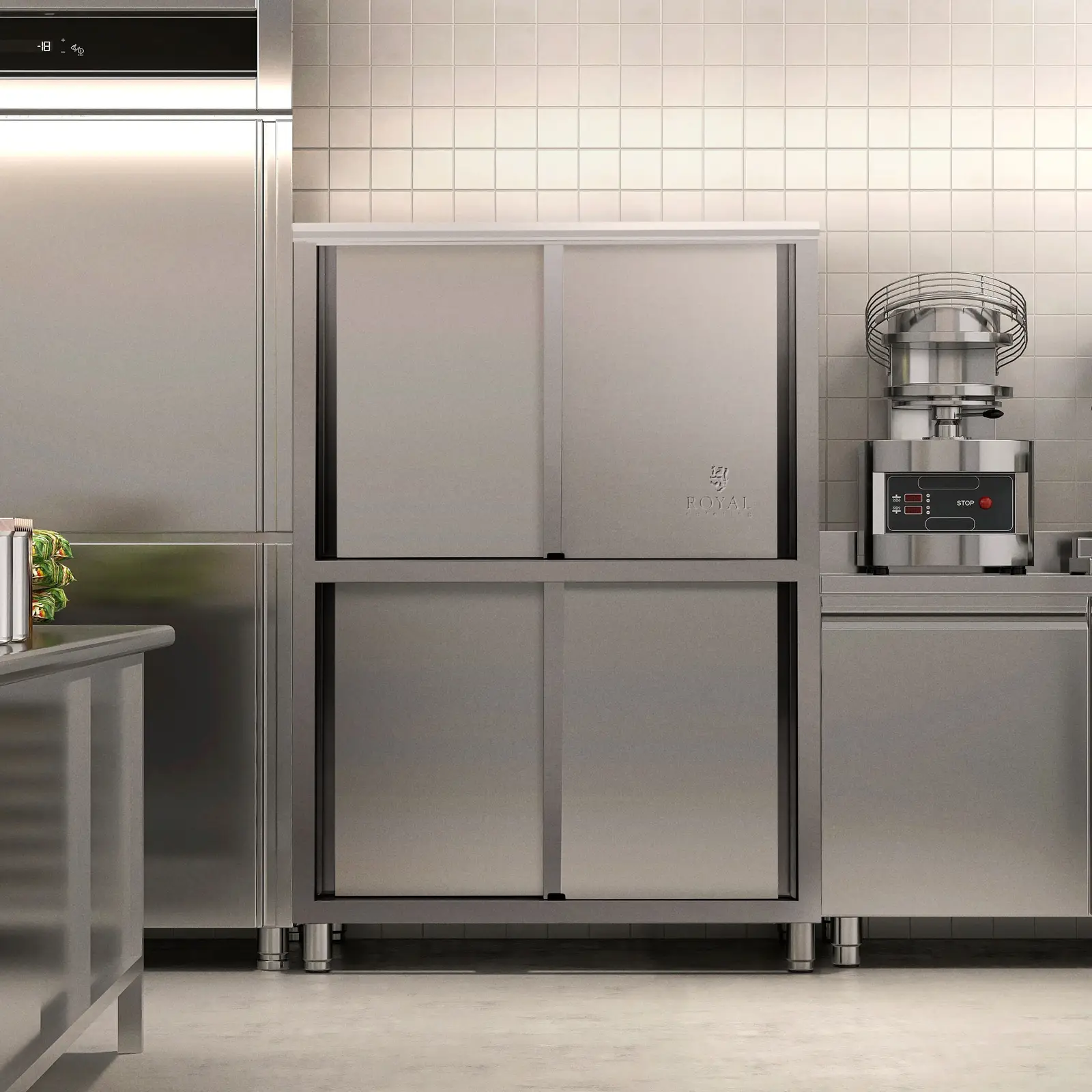 Ordnung und Hygiene in der Küche - der Royal Catering Edelstahl-Geschirrschrank ist die professionelle Lösung für Gastronomie und Großküchen! Mit den Maßen 120 x 70 x 180 cm bietet er reichlich Stauraum für Geschirr, Besteck und Küchenutensilien. Drei stabile Ablagen (je 119,1 x 60,6 cm) tragen bis zu 100 kg - die Gesamtbelastbarkeit liegt bei beeindruckenden 400 kg! Aus hochwertigem Edelstahl gefertigt, ist der Schrank nicht nur robust und langlebig, sondern auch super hygienisch und leicht zu reinigen. Die zwei platzsparenden Schiebetüren mit Gleitrollen sorgen für bequemen Zugang auch in engen Küchen. Besonders praktisch: Die höhenverstellbaren Füße (um 2 cm anpassbar) gleichen unebene Böden aus und ermöglichen mit ihrer 15 cm Höhe eine mühelose Reinigung darunter. Die Montage ist unkompliziert und der Schrank bei Bedarf auch wieder einfach demontierbar. Perfekt für Restaurants, Kantinen, Catering-Services oder auch für den anspruchsvollen Privathaushalt. Schaff dir Ordnung und Professionalität in deiner Küche - mit diesem langlebigen und funktionalen Geschirrschrank!