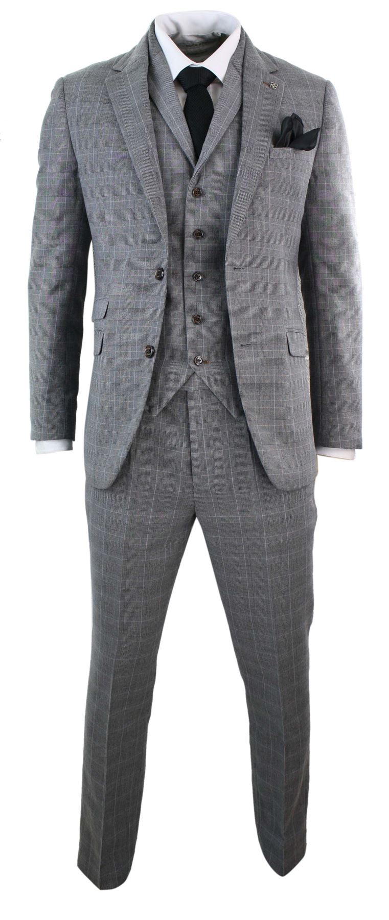 Cavani Herrenanzug 3-teilig Hellgrau Kariert - Vintage Style Mit Weste