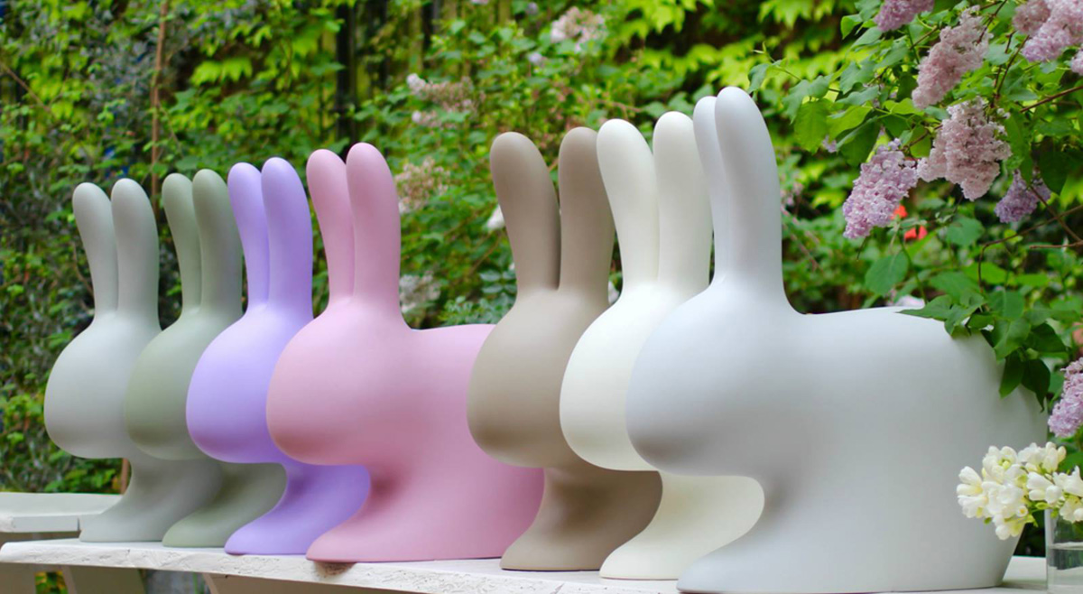 Qeeboo Rabbit Chair Baby - Hasenstuhl Aus Kunststoff | Graue Kindersitzgruppe 45,3x26,2x52,7 Cm