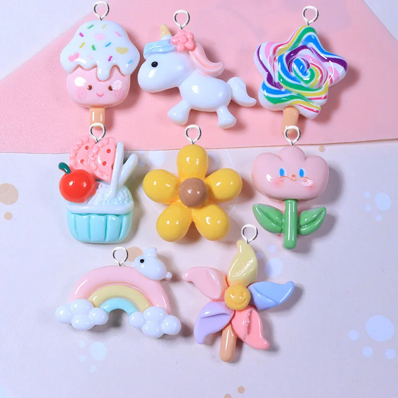 28 Stück Lebensmittel Charms Aus Harz - Süße Essen Anhänger Für DIY Schmuck