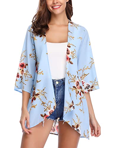 Minetom Damen Chiffon Kimono - Leichter Blumen Cardigan Als Bikini Cover Up