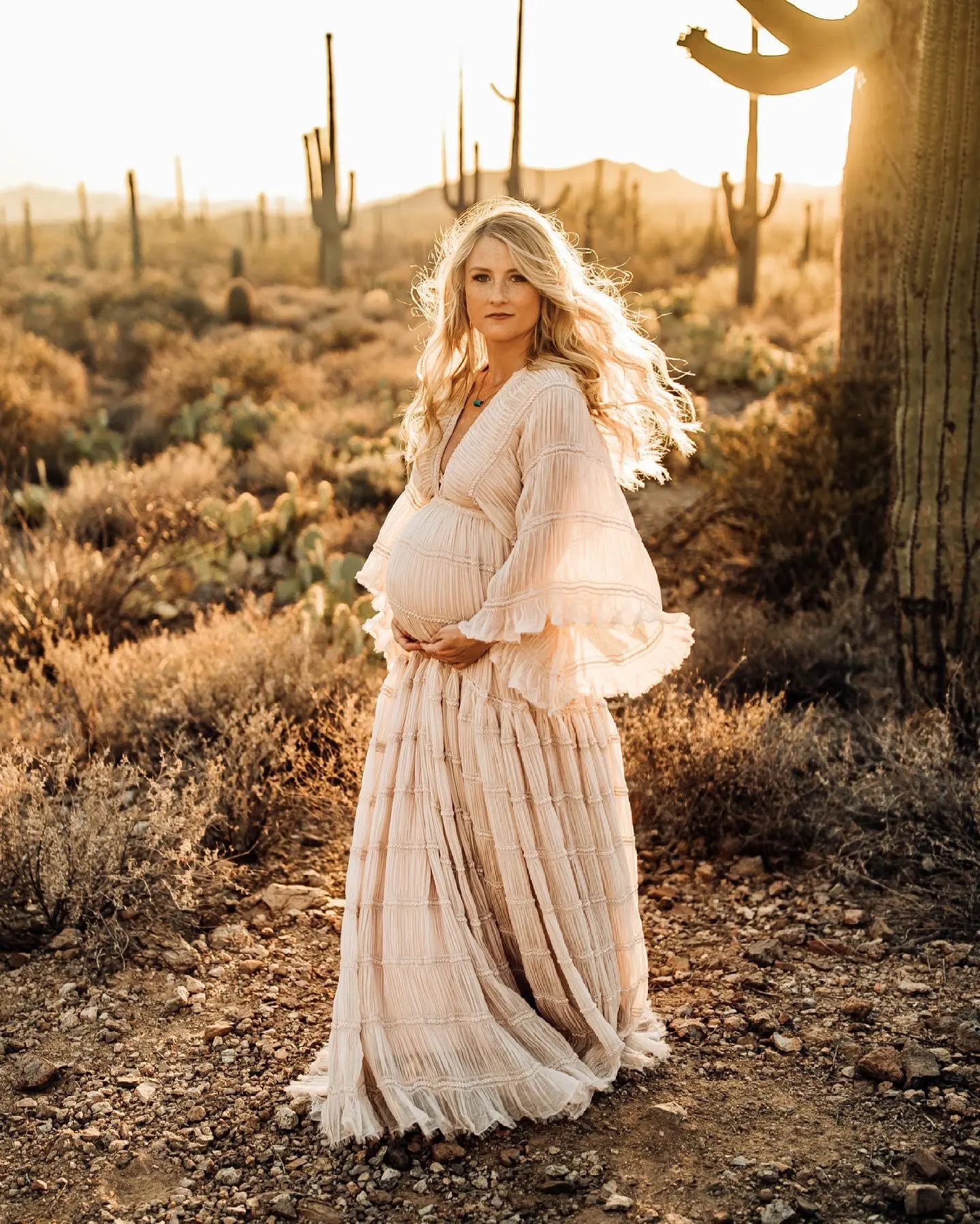 Oh, wie wunderschön! Dieses Chiffon-Kleid von BEAHING macht jede schwangere Frau zur strahlenden Schönheit. Das ärmellose Design mit offenen Schultern betont deine Kurven auf elegante Weise - perfekt für Fotoshootings, aber auch für besondere Anlässe. Aus weichem, leichtem Chiffon, der sich angenehm auf der Haut anfühlt und mit deinem Babybauch mitwächst. Die dehnbare Taille passt sich jeder Phase deiner Schwangerschaft an. Ob in Weiß oder anderen Farben - dieses Kleid lässt dich bezaubernd aussehen. Perfekt für die Babyparty, Hochzeiten, Urlaub oder einfach für besondere Momente. Fühl dich weiblich, elegant und selbstbewusst in dieser wundervollen Schwangerschaftszeit. Hol dir dieses Kleid und lass dich gebührend feiern!