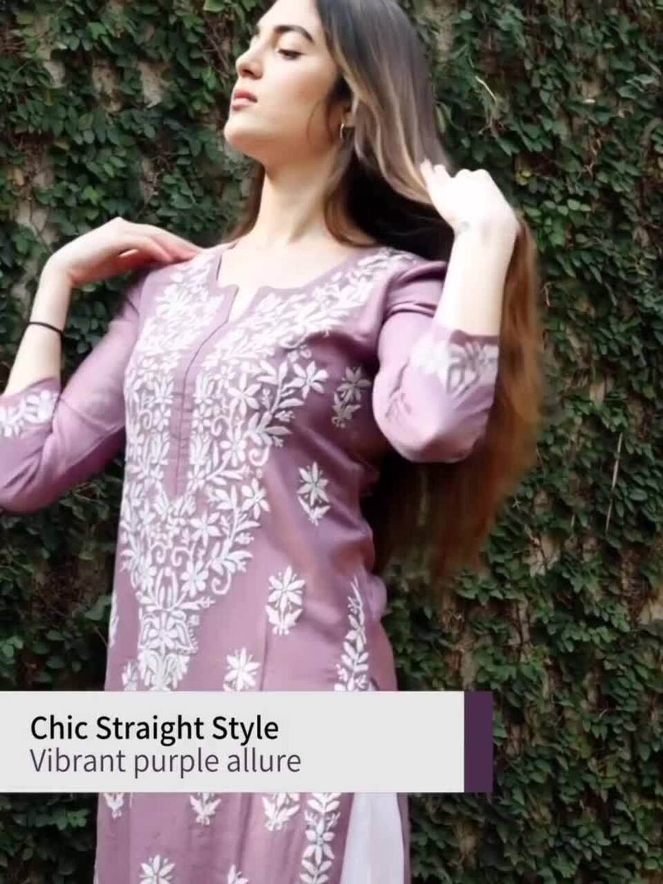 GoSriKi Damen Chikankari Kurta - Rayon Blend Straight Schnitt