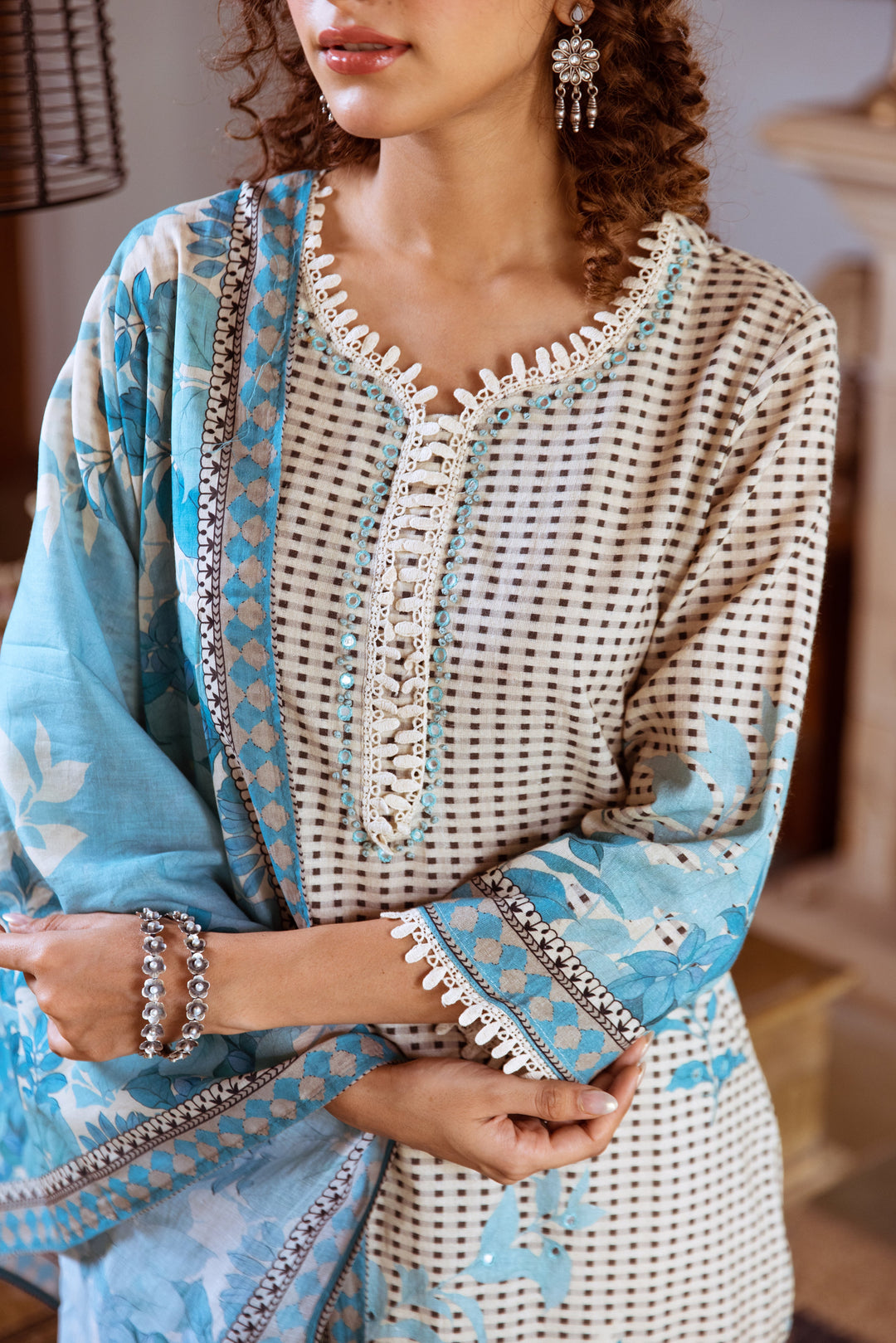 Mädels, dieser GoSriKi Kurta ist ja der absolute Traum! Aus weichem Baumwoll-Mischgewebe - fühlt sich super angenehm auf der Haut an. Mit traditioneller Chikankari-Stickerei - sieht einfach edel aus. In Schwarz mit Rundhalsausschnitt - total zeitlos. 3/4 Ärmel und wadenlang - perfekte Länge für jeden Tag. Straight Schnitt - sitzt locker und bequem, nicht zu eng. Von Größe S bis XXL - für jede Figur die passende Passform. Perfekt für traditionelle Anlässe, Freizeit oder Partys - einfach vielseitig kombinierbar. Die Verarbeitung ist super sauber - man sieht, dass mit Liebe zum Detail gearbeitet wurde. Einfach anziehen und du fühlst dich sofort wohl! Ob zum Shoppen, für die Arbeit oder besondere Anlässe - mit diesem Kurta machst du immer eine gute Figur. Die Hose ist im trendigen Stil - gibt einen lässigen Look. Einfach was Anziehen ohne groß nachzudenken - das ist dein Go-to-Outfit! Damit bist du immer perfekt gekleidet, egal ob drinnen oder draußen. Einfach ein Must-have für deinen Kleiderschrank!