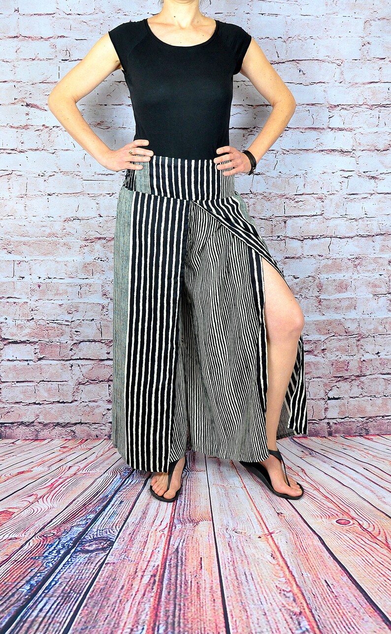 Chillamalia Wickelhose Paisley Design | Hosenrock Aus Thailand | Schwarz-Weiß | Bis Größe 44 | Leichter Stoff
