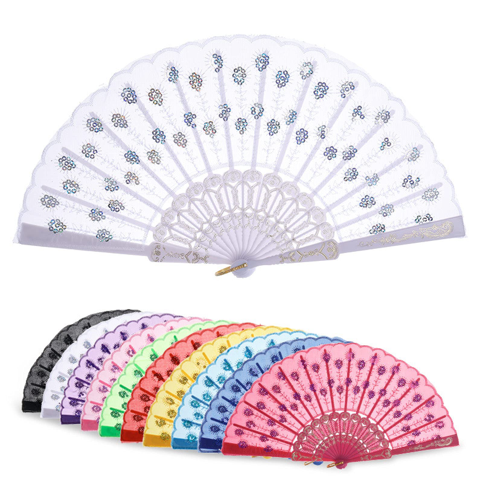 MSLSOZ 2x Chinesische Fächer Mit Quasten - Stoff Fächer Blumenmuster Dekoration